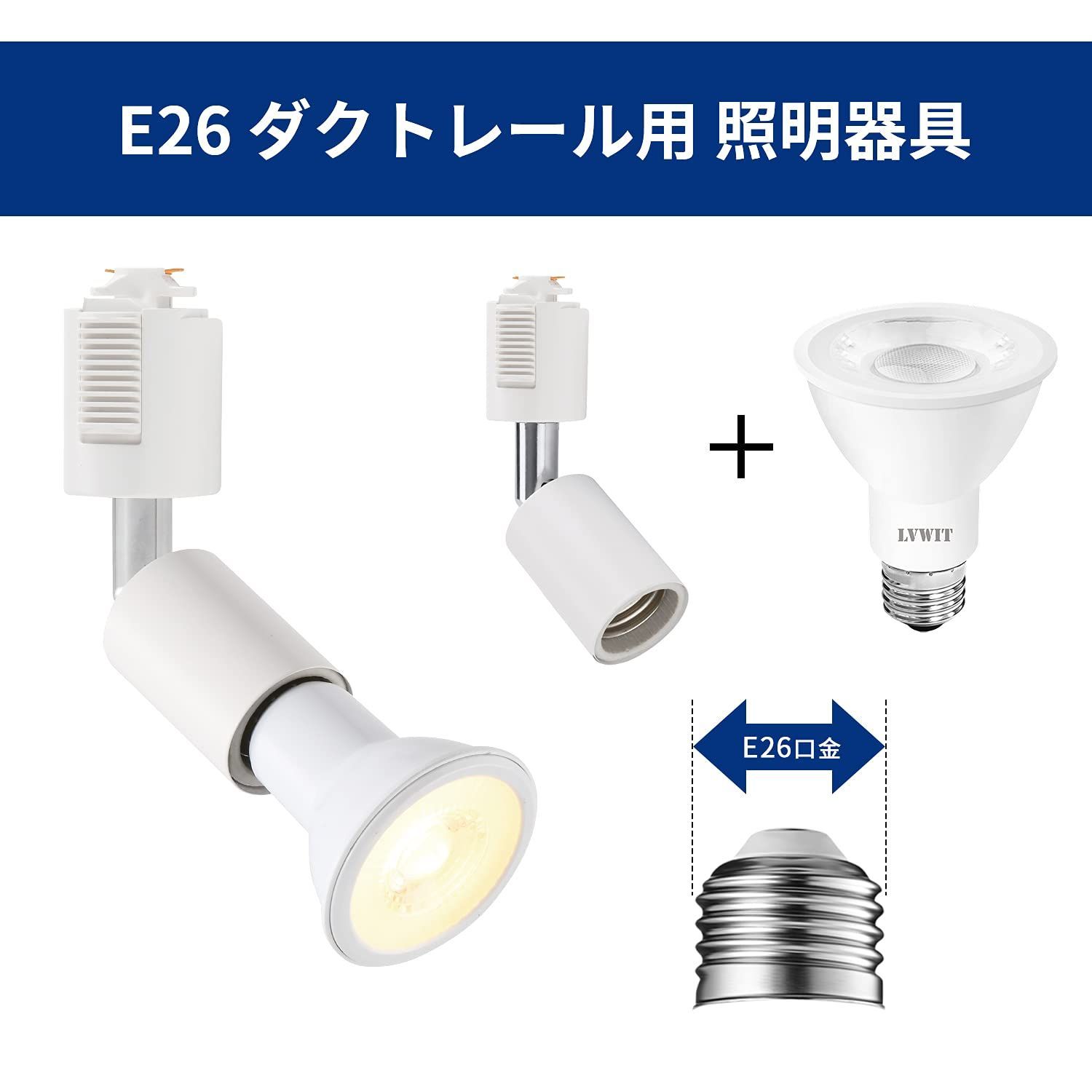 LVWIT ライティングバー用 スポットライト E26口金 電球付き ダクトレールライト 省エネ 6W ビーム電球 PAR20 3000K電球色 ホワイト 角度調節可能 照明器具 LED電球+器具 2個セット