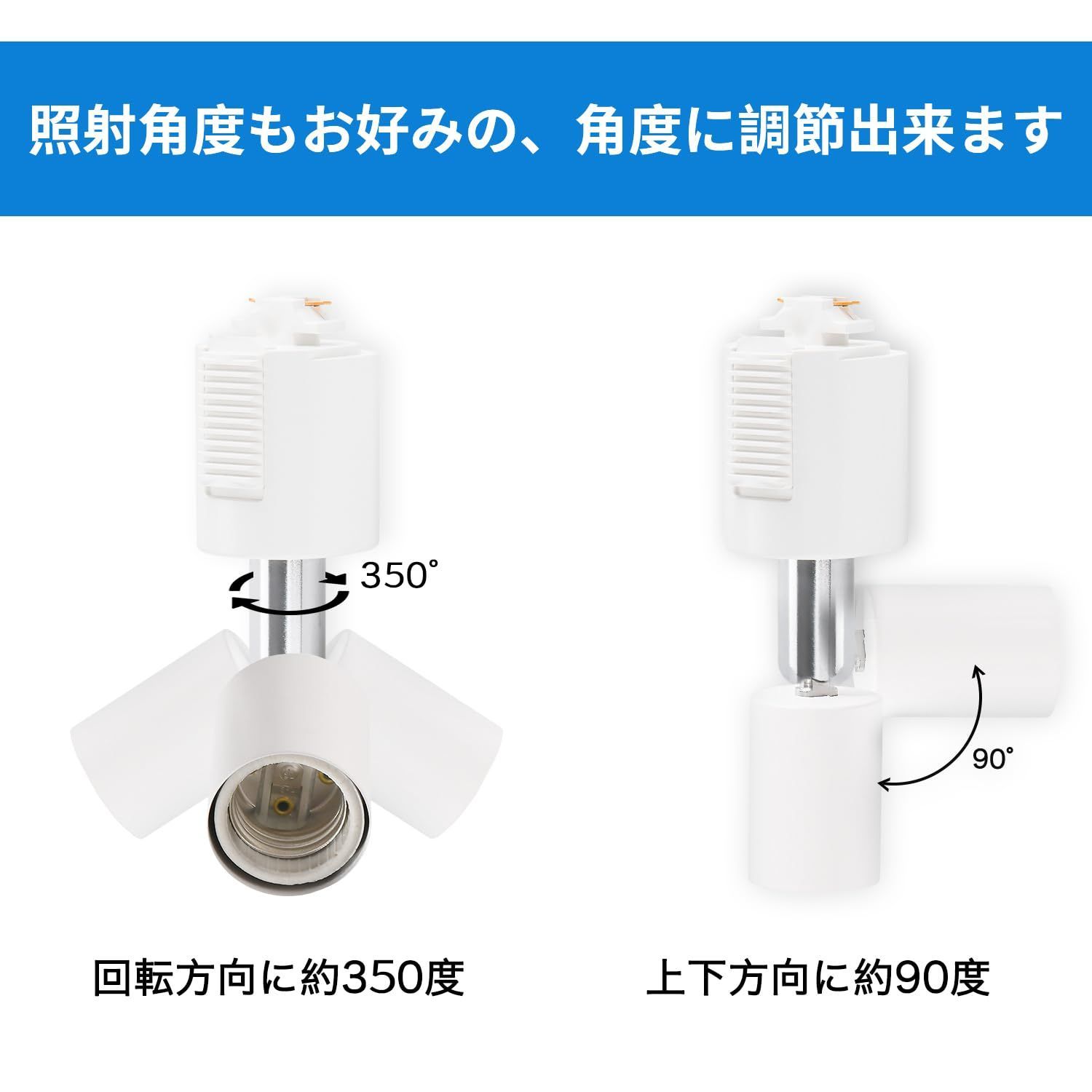 【角度の自由調整】上下方向に約90度、回転方向に約350度、照射角度もシーンに合わせてお好みの角度に調節出来ます。インテリア照明やアクセント照明に、かなり洒落です。屋内専用、商品展示用照明、商業施設・店舗照明など、様々なシーンで活躍しています。