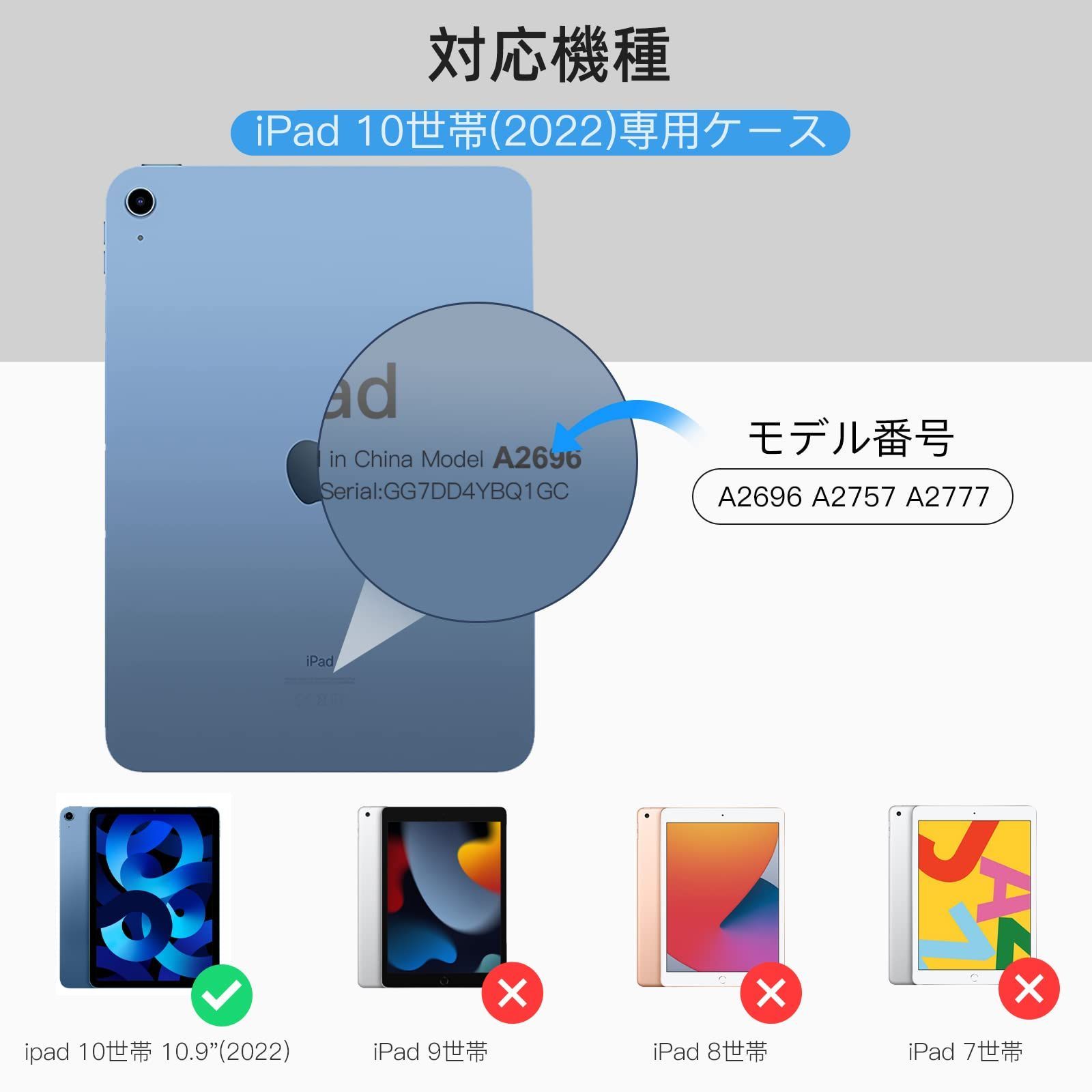 【対応機種】対応iPad 11/10世代 専用 ケースです。2025/2022発売 第10/11世代 10.9インチ 対応iPad (モデル番号:A2696/A2757/A2777)。ご注意:ご購入する時に手元のデバイスの裏面に記載しているモデル番号をご確認ください)
