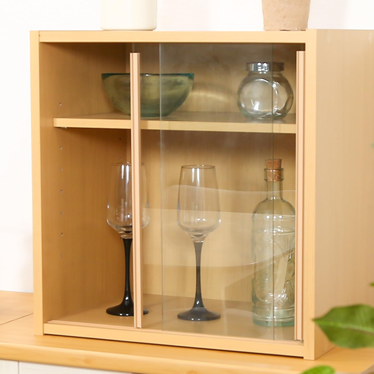 不二貿易 食器棚 キッチン収納 幅43×奥行29×高さ44cm ナチュラル ガラス扉 可動棚 組立品 81908