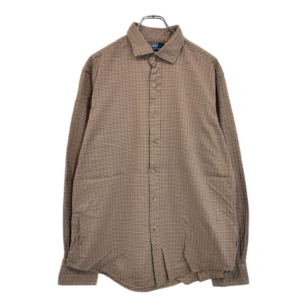 Polo by Ralph Lauren ポロ ラルフローレン ポロプレイヤー刺繍 長袖シャツ ブラウン(メンズ L)中古 古着 U9550