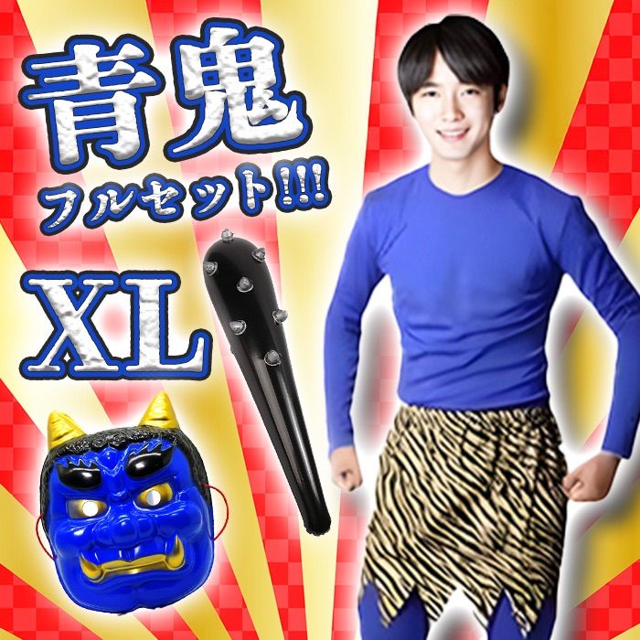 青い全身スーツ/鬼の腰巻き/こん棒/お面