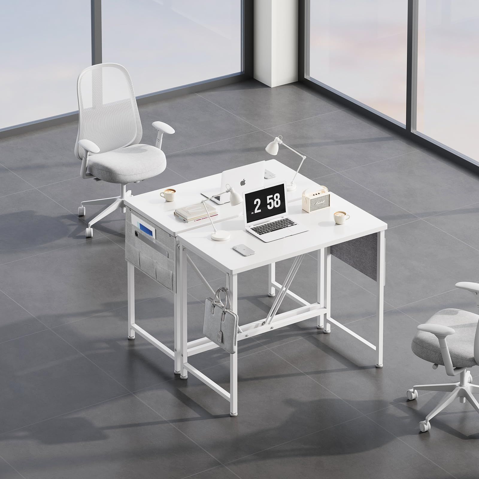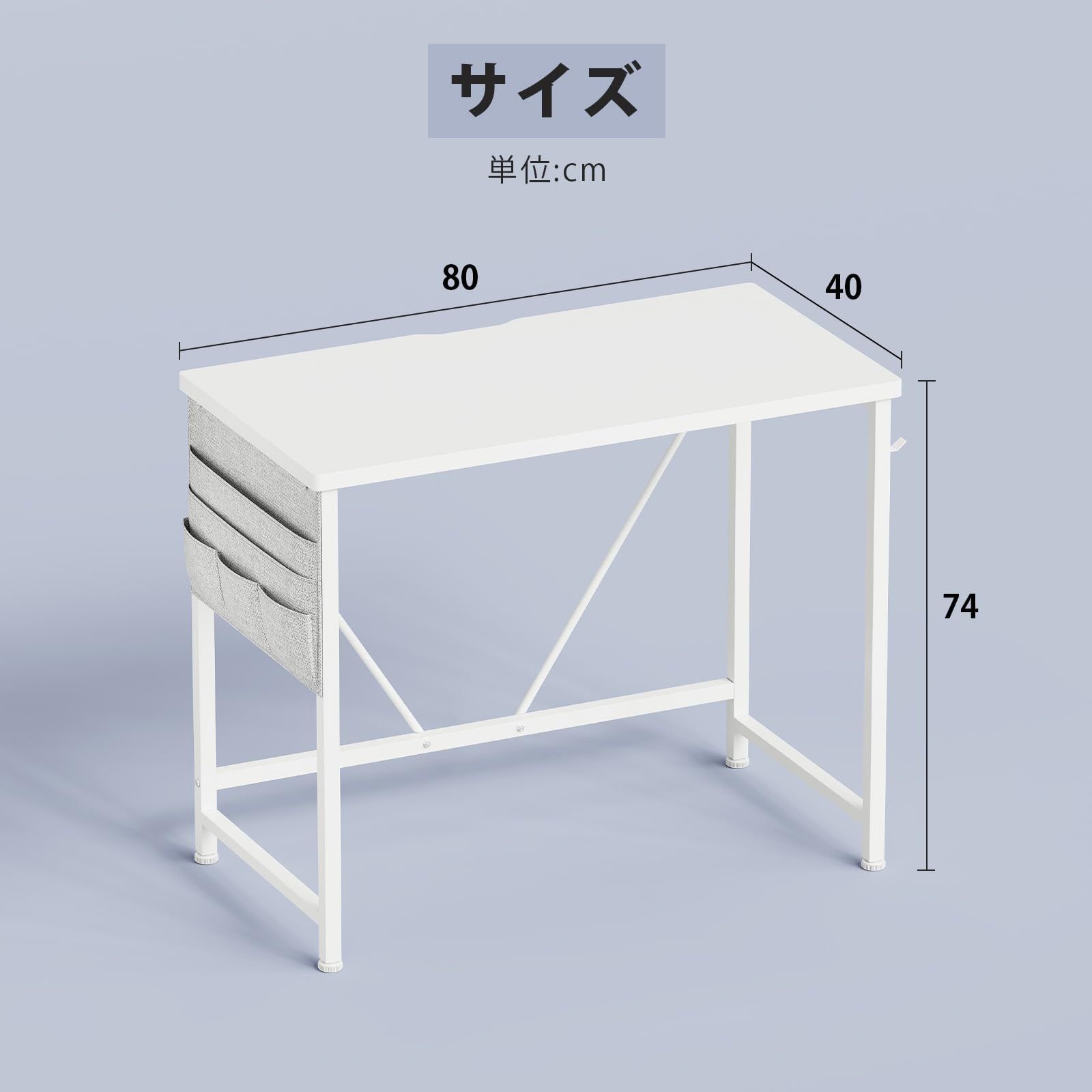 デスク 机 pcデスク 勉強机 幅80cm パソコンデスク 収納袋付き学習机 小さい つくえ 作業机 在宅 組立簡単 テレワーク 白い