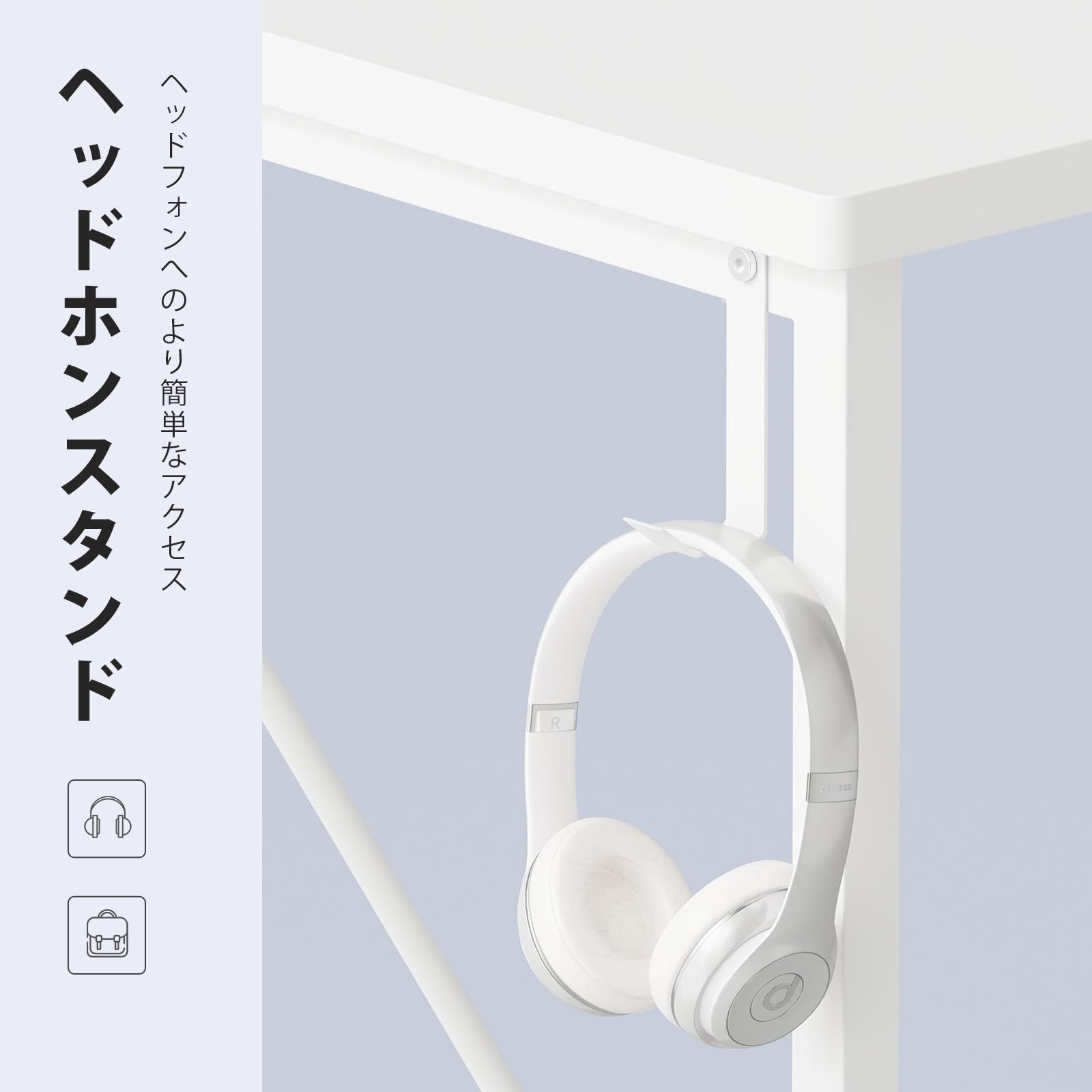 【大きな作業台と収納スペース】デスクの上は大きいのでパソコンと周辺機器を並べて置くことができ、手元がゆったり使える広さがあります。デスクは丈夫な収納袋とフックが付いておりますので、書類、カバン、ヘッドフォンなどの収納がとても便利になり、天板がすっきり片付けられます。