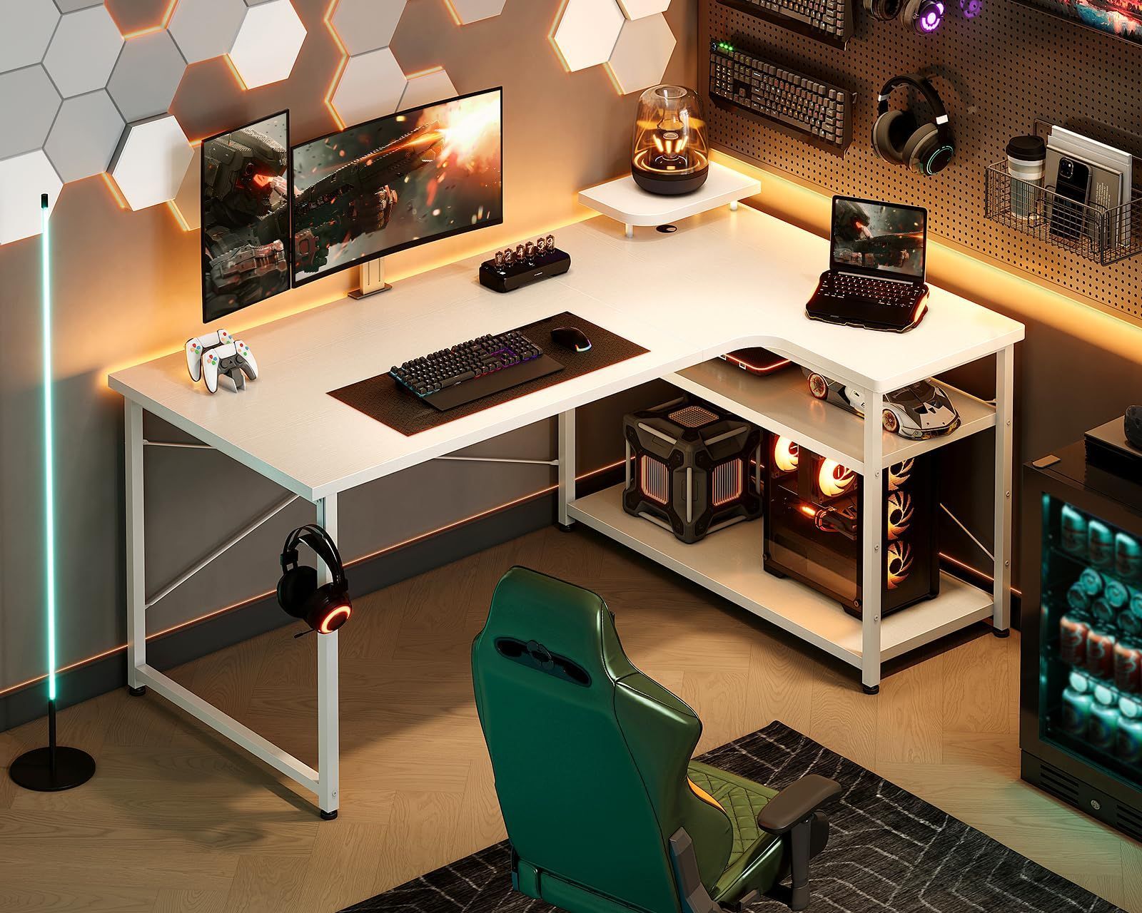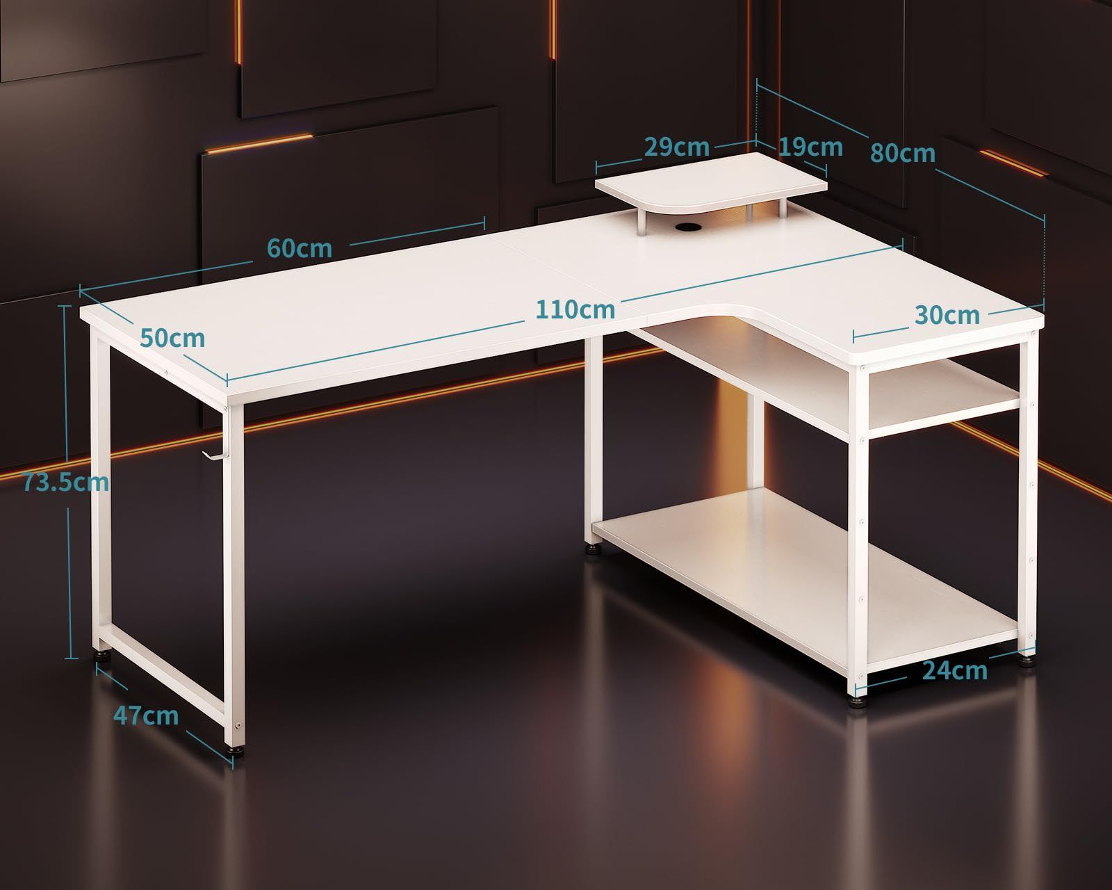 ODK ゲーミングデスク L字 パソコンデスク 幅110 デスク desk 机 pcデスク 棚付き オフィス ワーク 在宅勤務 ?子 作業机 組立簡単 ホワイト 右棚