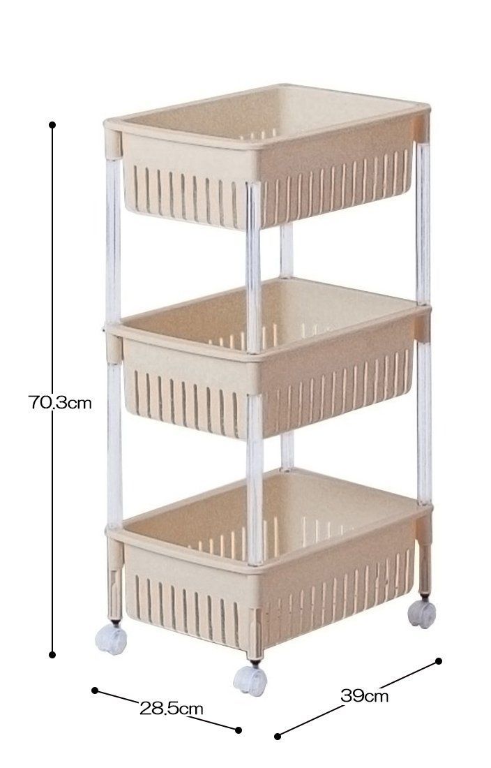 サンコープラスチック(SankoPlastic) キッチンワゴン M-30 ルーチェ ベージュ 3段 幅28.5×奥行39×高さ70.3cm 日本製 メッシュ キャスター付き おしゃれ すき間 収納 401977