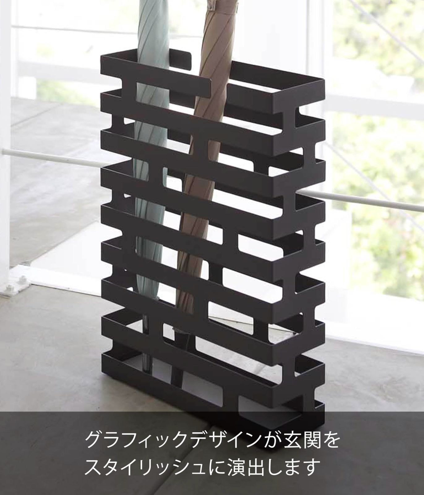 ●シンプルモダンなグラフィックが玄関をスタイリッシュに演出します。折り畳み傘も引っ掛けて収納できます