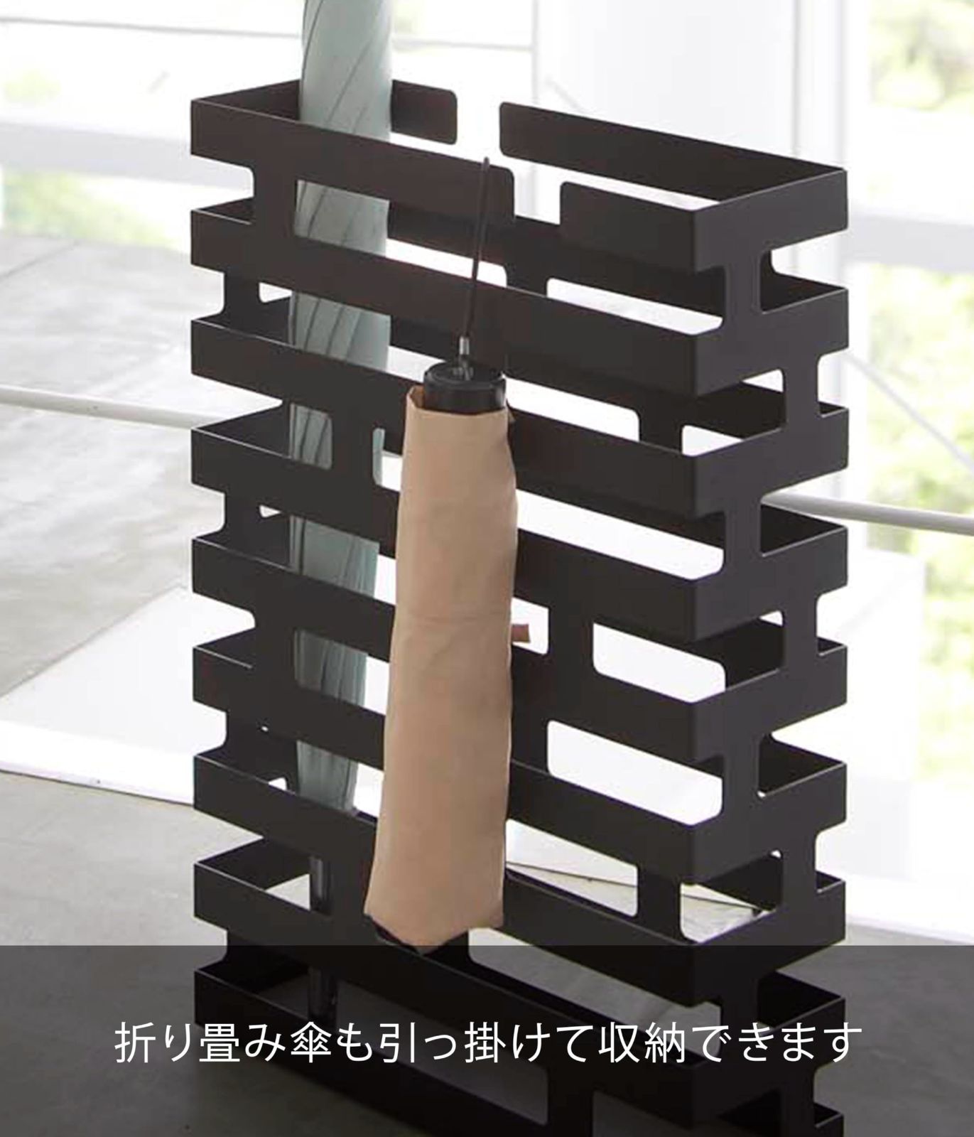 折り畳み傘も引っ掛けて収納できます。