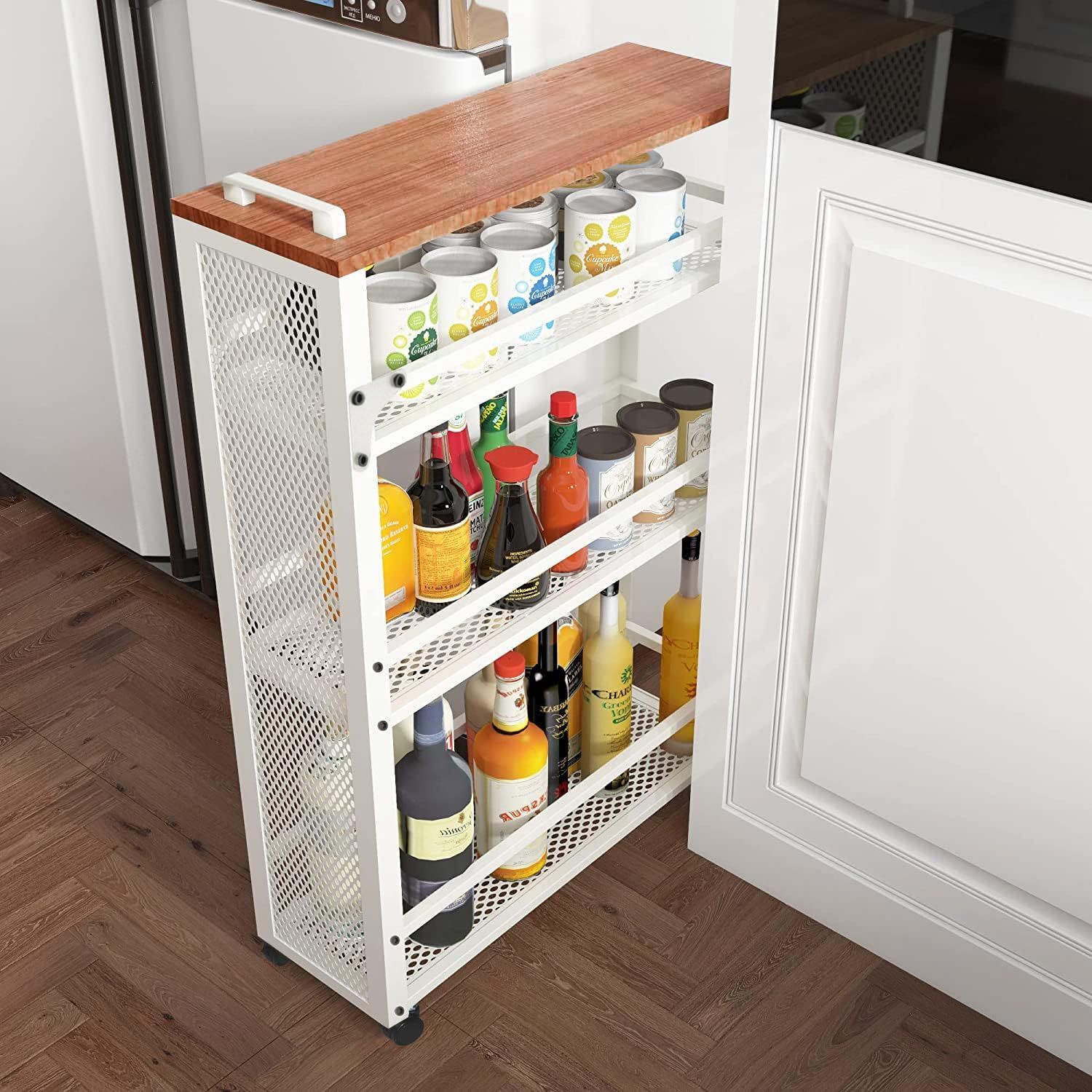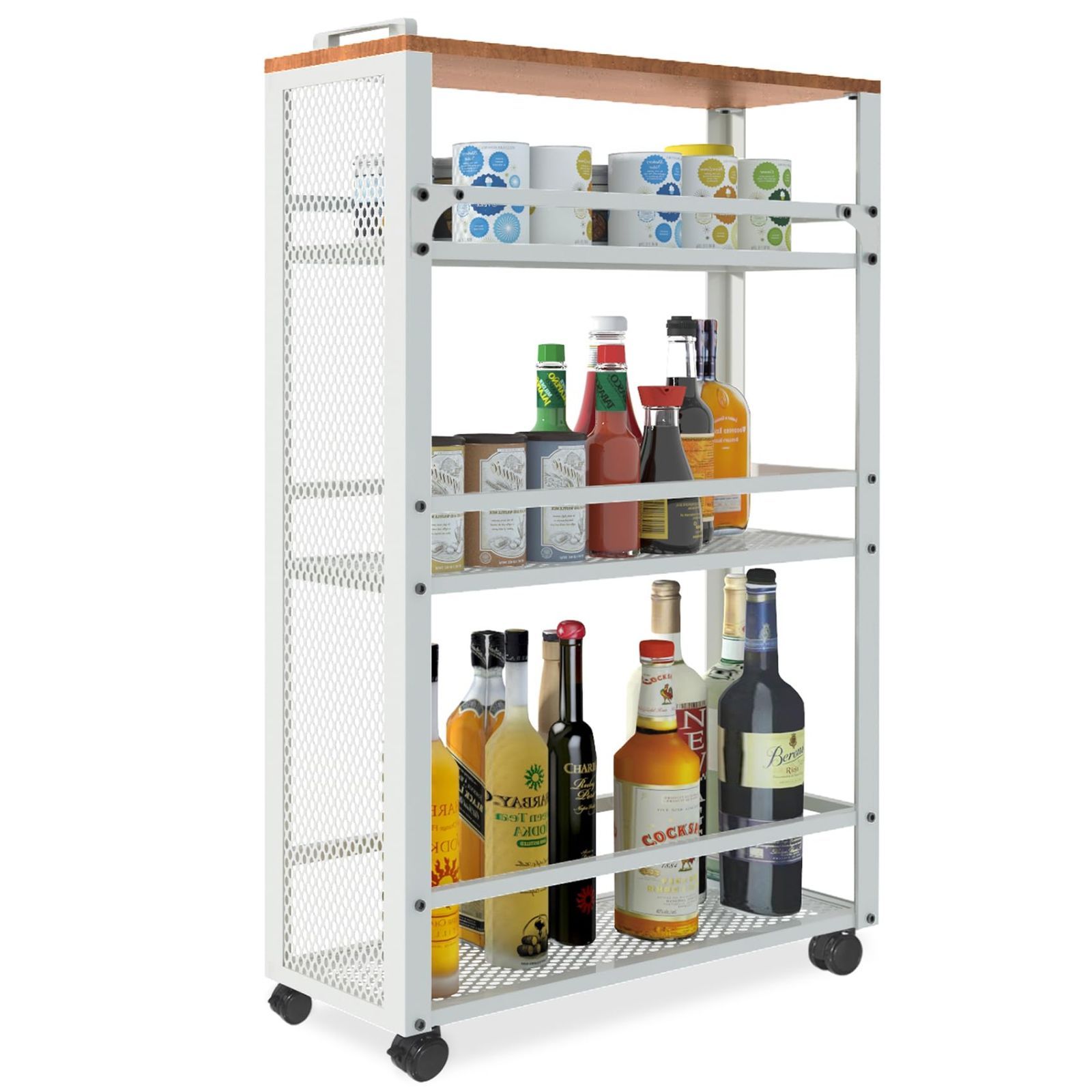 キッチンワゴン キッチンラック 調味料ラック キャスター付 スリム 隙間収納 収納 3段 棚 台所 幅54×奥行18.5×高さ81cm 収納ラック 収納カート サイドワゴン スチールラック バスケットラック ホワイト (ホワイト)