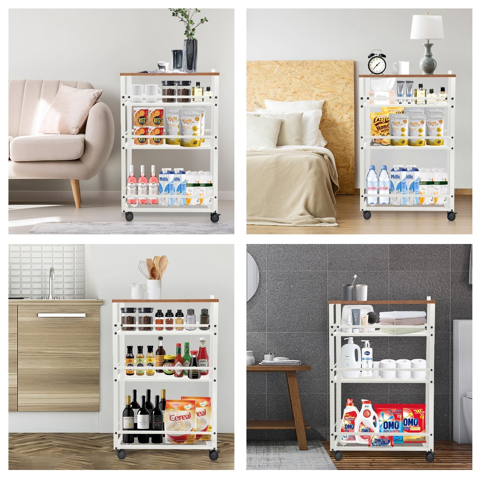 【どんな場面でも活躍】高品質な天然木化粧繊維板天板+スチール材質は採用なので、耐久性と安定性を誇ります。スリムボディーをして、部屋の隙間に自在に配置されています。トイレ収納、ベッドルーム、居間、子供部屋、キッチン、書店、美容室などの使用できます。キッチンワゴン、バスルームカート、ツールカート、ローリングキッチンカート、化粧カート、スチールラックなどとして最適です。