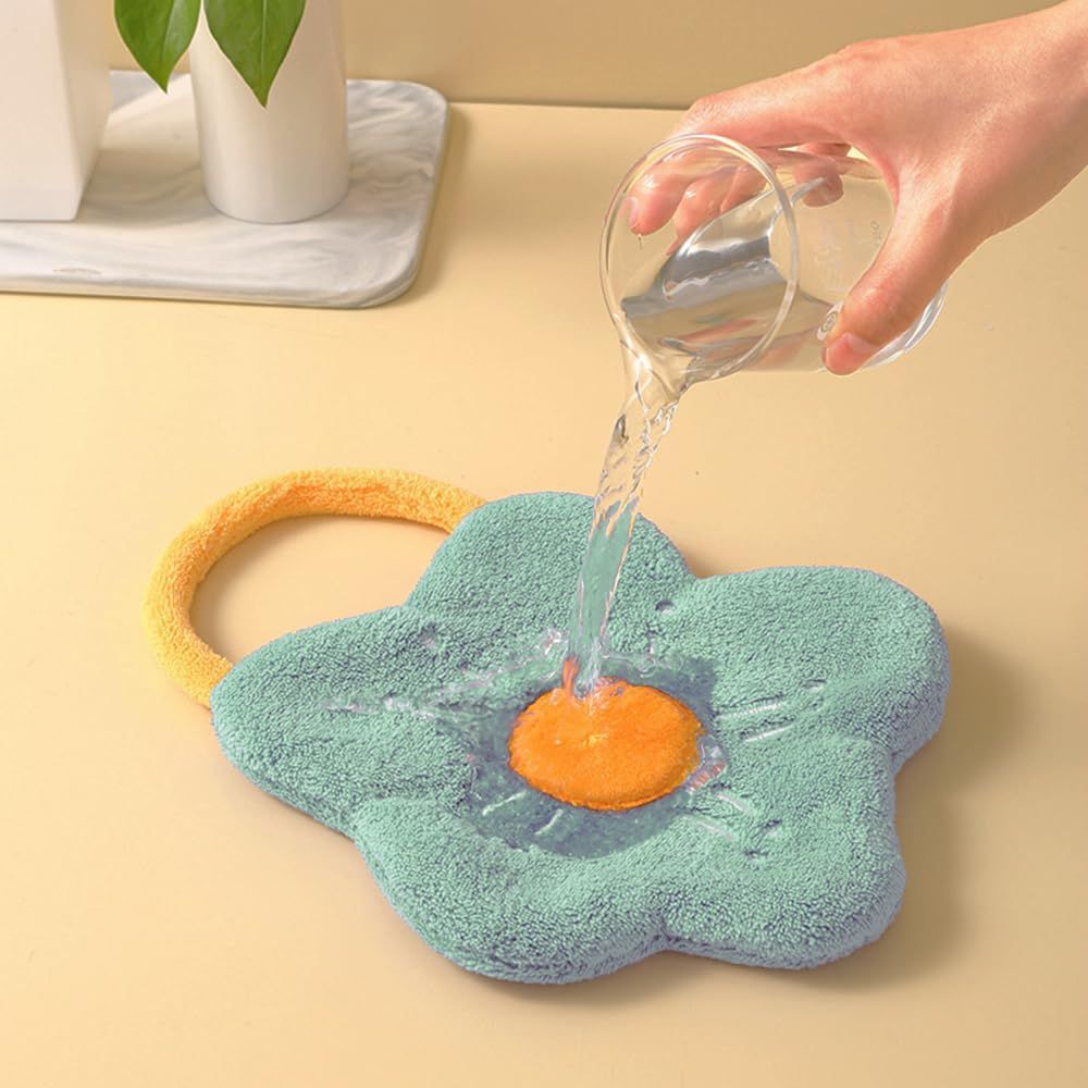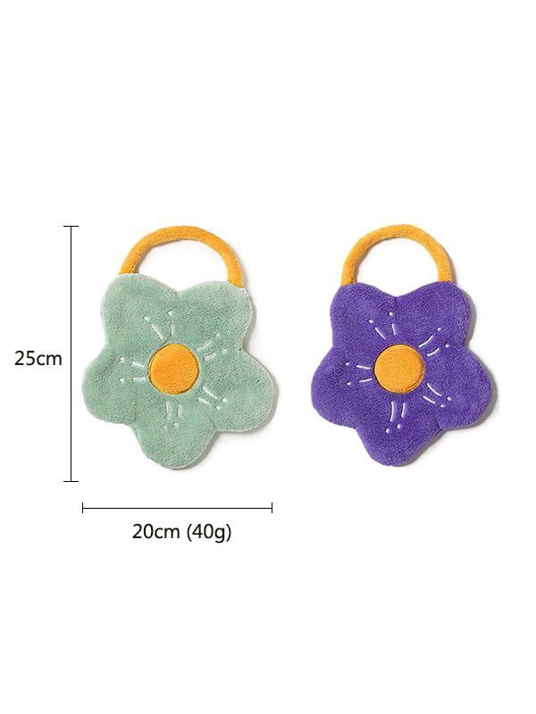 お手拭きタオル 吊り下げタオル ループ付き ハンドタオル 花の形 (パープル)