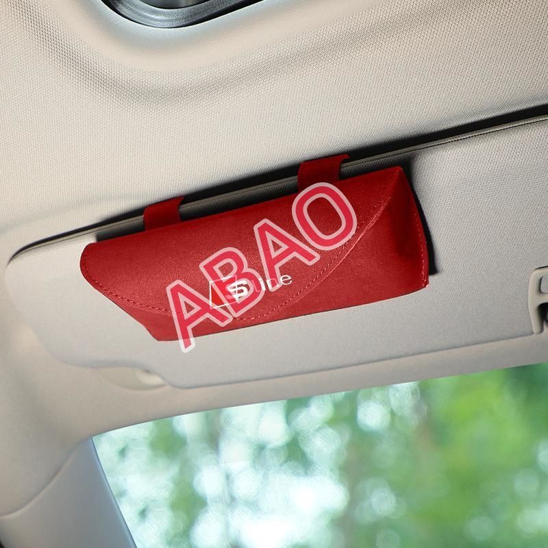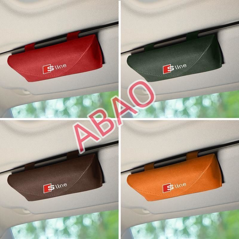 Sline アウディ 車載サングラス収納 メガネボックス 車用メガネケース サングラスクリップ収納ケース サンバイザー 手触りいい アルカンターラ素材 AB21