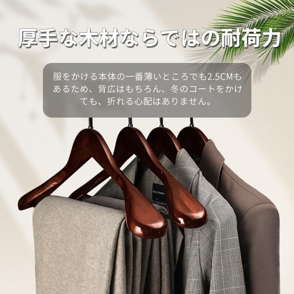 厳しい品質基準:自社で徹底した品質管理を行っており、厳しい品質基準に合格した商品のみを出荷しています。製造から検査まで、ヒビ、バリ、光沢の剥がれなどの不具合を丁寧にチェックし、不良品を徹底的に排除し、高品質な木製ハンガーをお届けしています。また、商品が安全に届くように、慎重に梱包して発送しています。外観は高級感のあるデザインで、贈り物にも最適です。