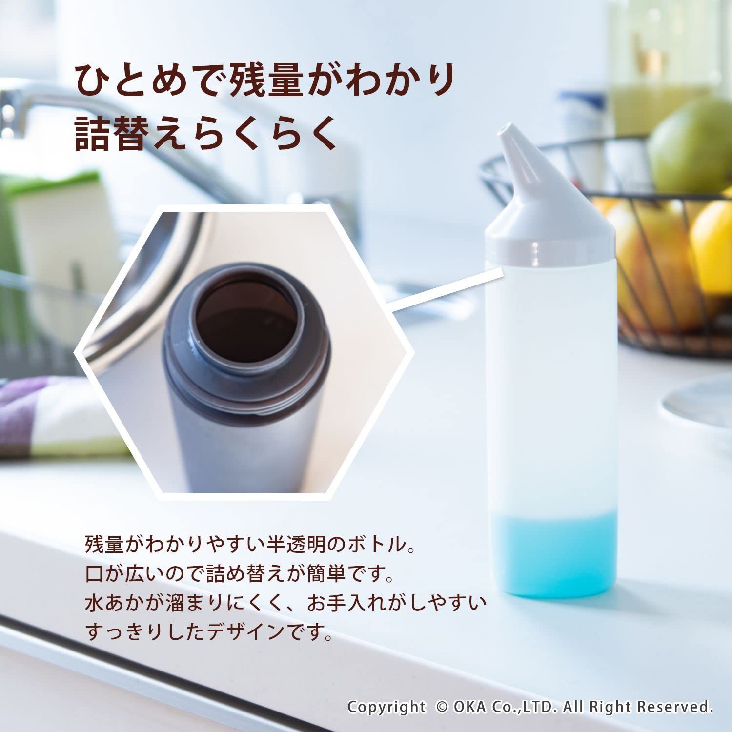 ボトルを傾けて直接押し出すタイプだから洗剤の量が調節しやすく、好きなところにかけることができます。