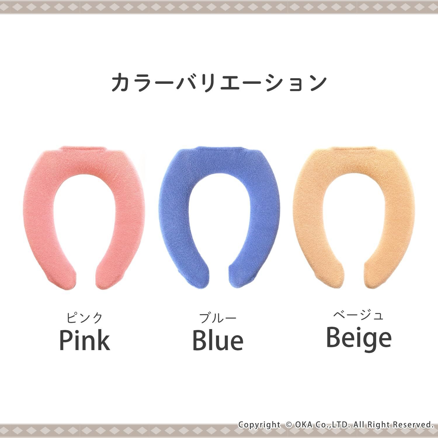 コムフォルタシリーズでお揃いにできるU型専用の便座カバー。トイレ空間を爽やかにするような、シンプルさとあたたかさを合わせもった第6弾の「コムフォルタ6」。komfortaは、世界共通語で心地よいという意味です。おしりにやさしいふんわりとした座り心地を体感できます。洗濯ネットに入れて丸洗い可能です。やさしさの象徴ともいえるピンク、くっきりとした明るいベージュ、少し赤みがかったブルーであたたかみと清潔感のあるカラーバリエーションになっています。