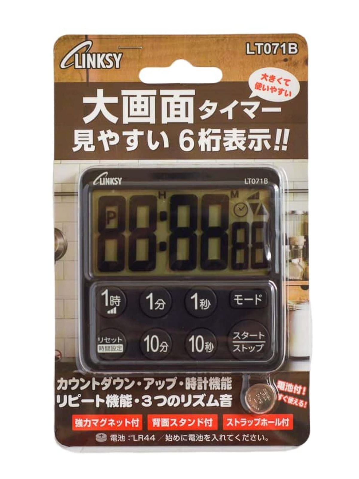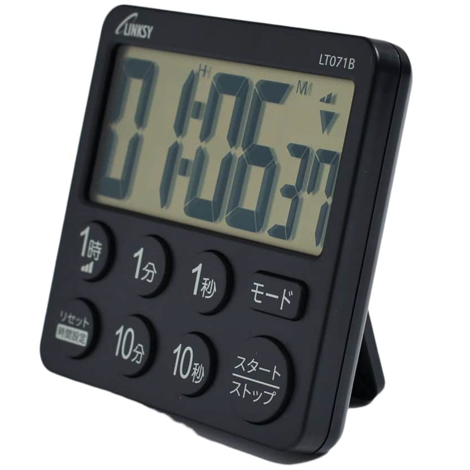 LINKSY 大画面タイマー 見やすい6桁表示! ! 時計付 LT071BA 7.8×7.8×1.7cm ブラック