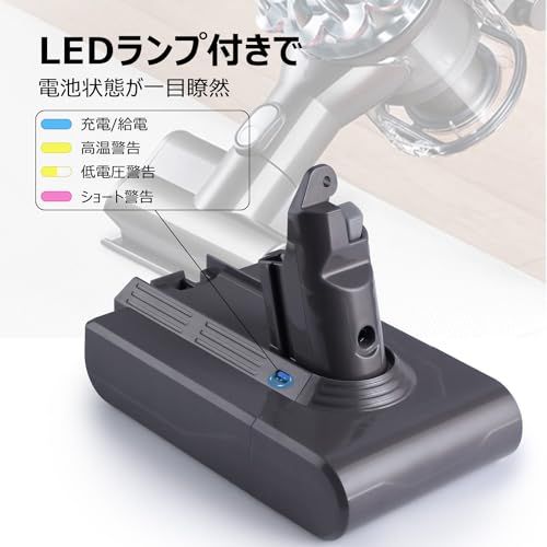 【ダイソンV6交換バッテリー、純正品と完全に互換 】DC58 DC59 DC61 DC62 DC72 DC74、SV03 SV05 SV06 SV07 SV09 HH08、 V6 animal/V6 fluffy /V6 trigger/v6 Absolute/V6 Motorhead/V6 Extra/V6 Mattressなど掃除機に対応しています。壁掛けにも対応します。