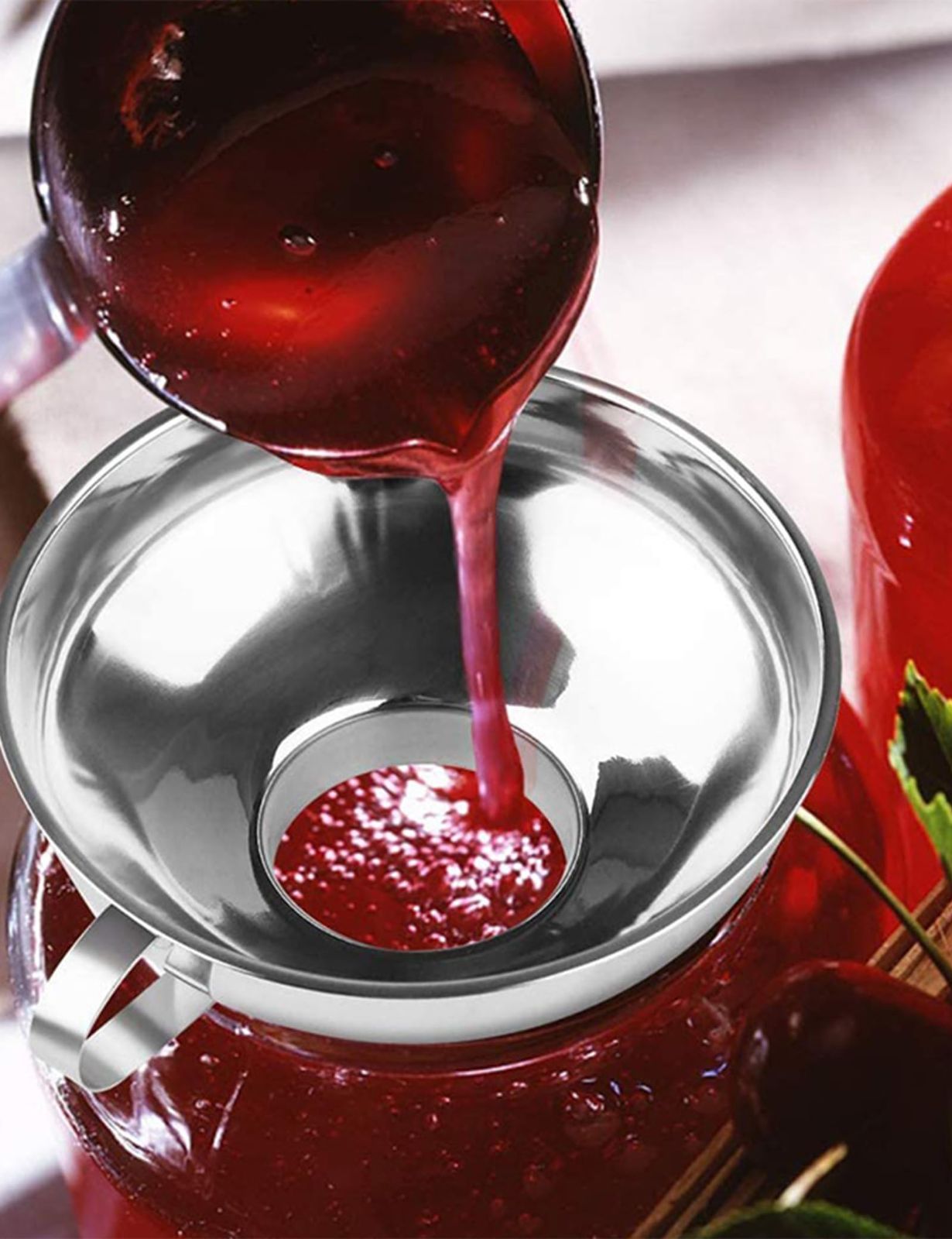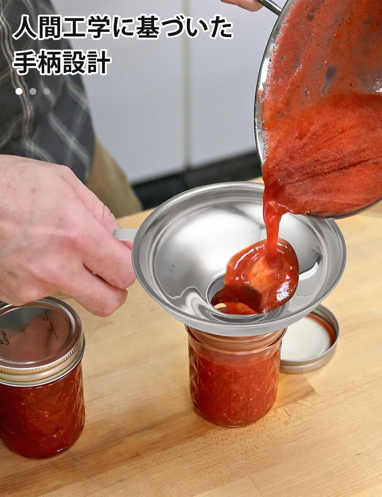 【太い口径の漏斗】ジャムやチャツネだけでなく、オイルやビネガー、乾物の瓶詰めにも使える。