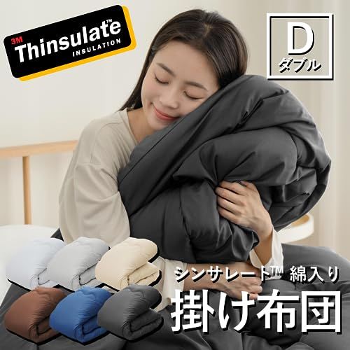 【サイズ】掛け布団 シンサレート ダブル 約190x210cm【素材】〈中わた〉ポリエステル100%(シンサレート使用)(約2.1kg)〈生地〉ポリエステル100%(ピーチスキン加工)【仕様】8箇所ループ付き