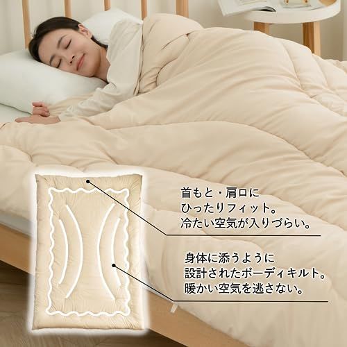 【シンサレート全面使用掛け布団】シンサレートは、微細な繊維構造により優れた断熱性能を発揮する素材です。「暖かくて、厚くない」を可能にし、 全世界でウィンタースポーツウエアや防寒着などにも採用され、スリムで快適な暖かさが人気。この掛け布団は、中材にシンサレートを全面に使用することで、首元からつま先まで暖かさを包み込みます。