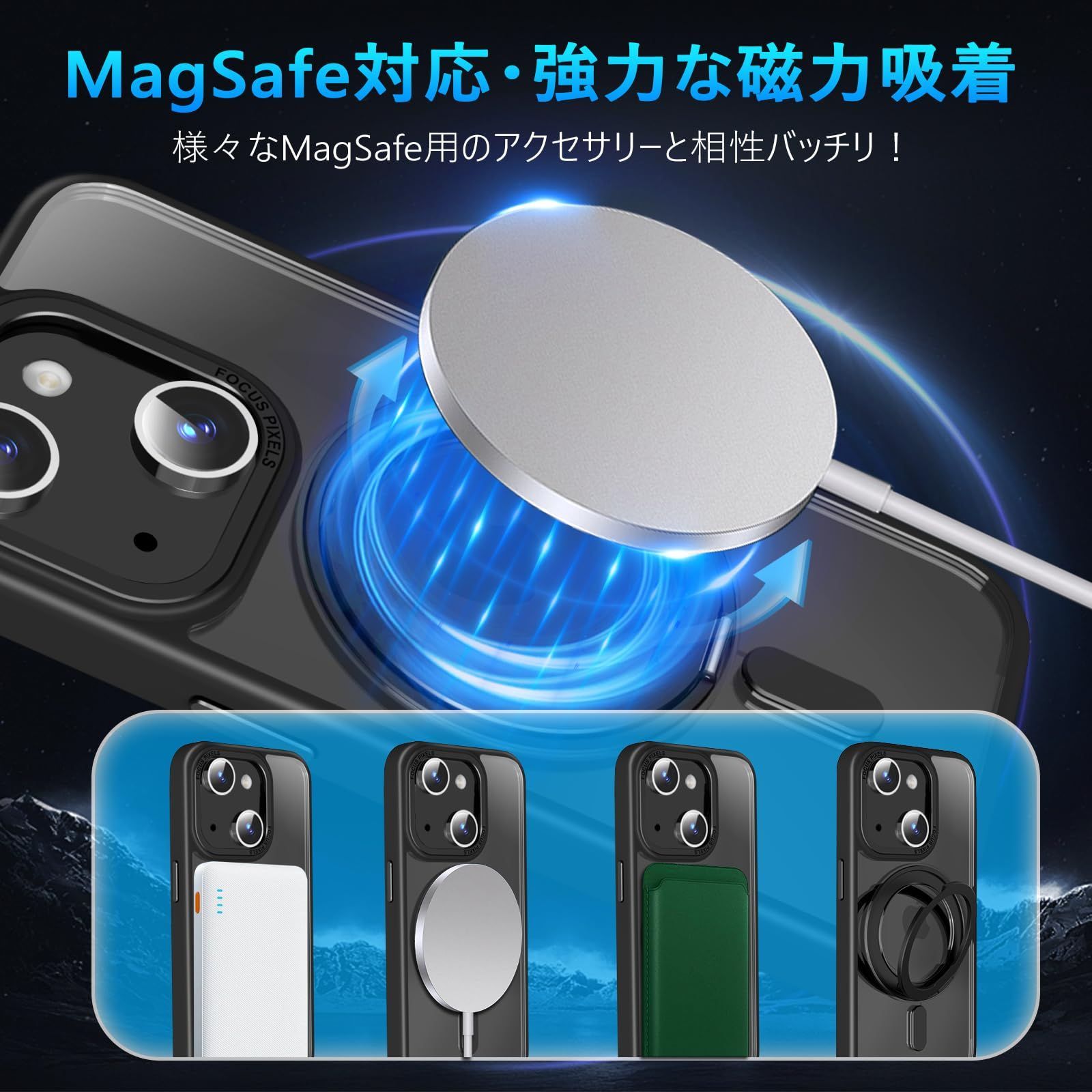 【MagSafe対応・強力な磁力吸着】背面に薄くて強いマグネット内蔵しています、吸着力を高めて、安定感をアップしてエネ損失なしの快速ワイヤレス充電できる。ケースをつけたままマグセーフ機能を快適に使用できます。車載ホルダーでの使用時もとても安心感溢れ、様々なMagSafe用のアクセサリーと相性バッチリ!より安全、安定、急速なワイヤレス充電体験をもたらします。