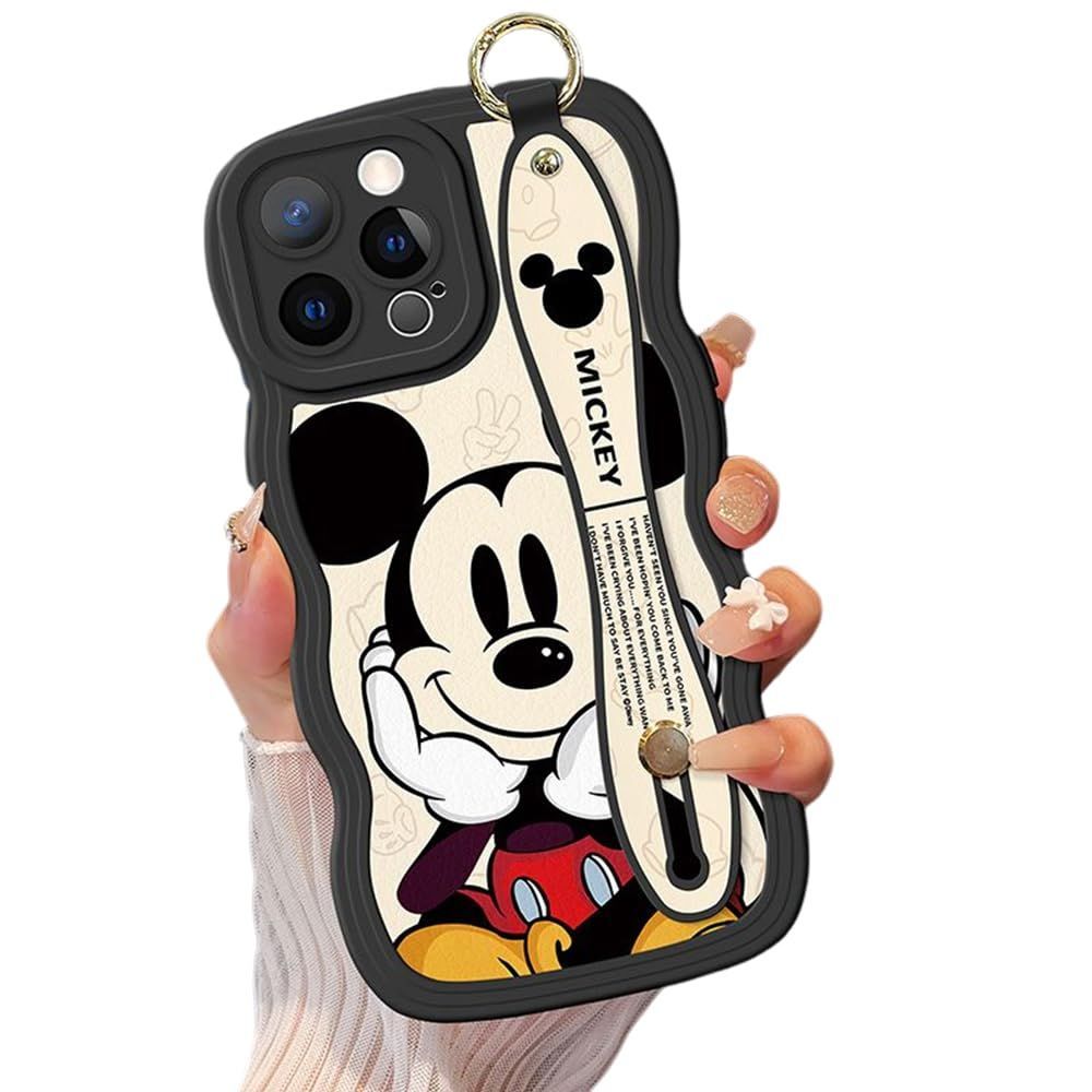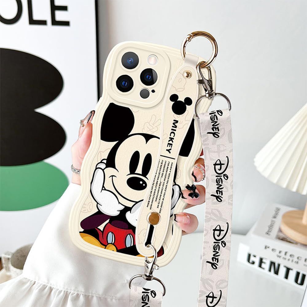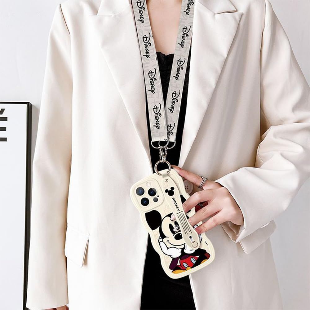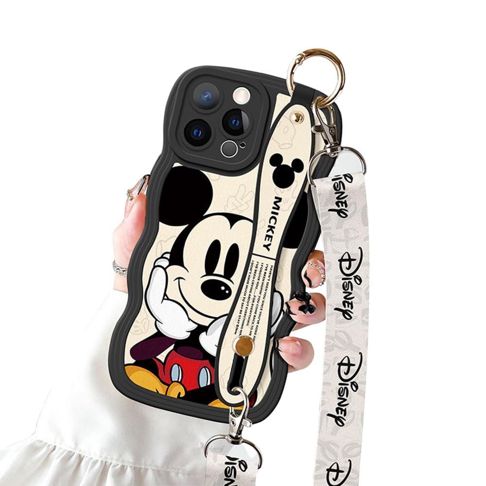 ミッキー スマホケース iPhone 15 Plus 用 ケース スマホケース 携帯ストラップ ショルダーストラップ 首かけストラップ アイフォン 15 Plus 用 ケース 6.7インチ シリカゲル保護カバー リストレット ハンドストラップ