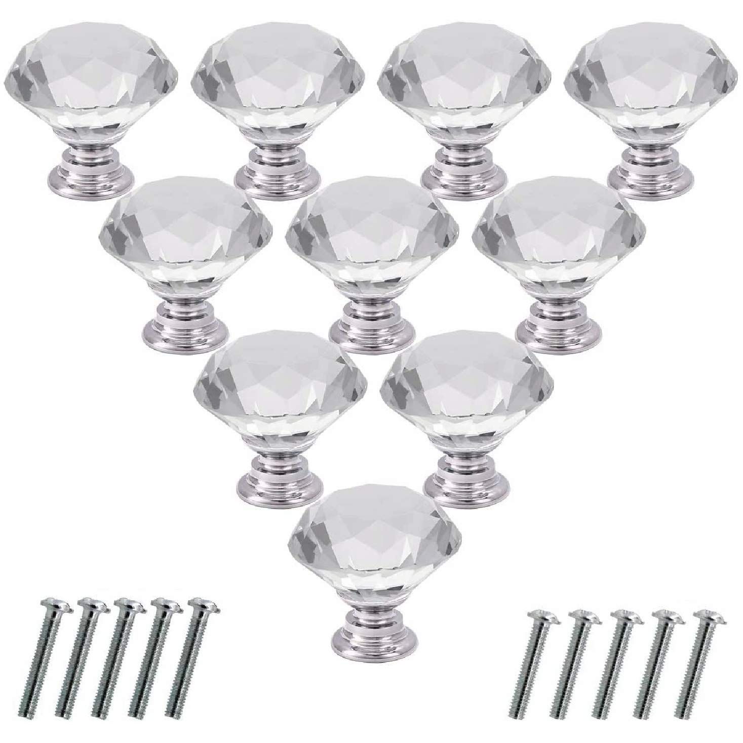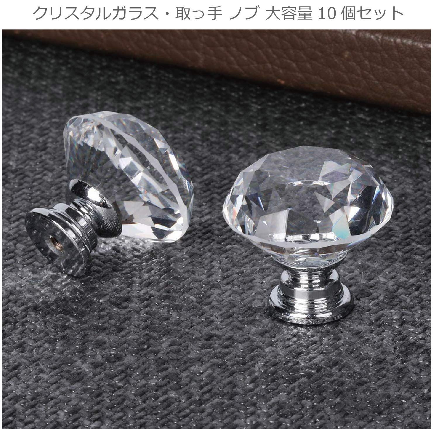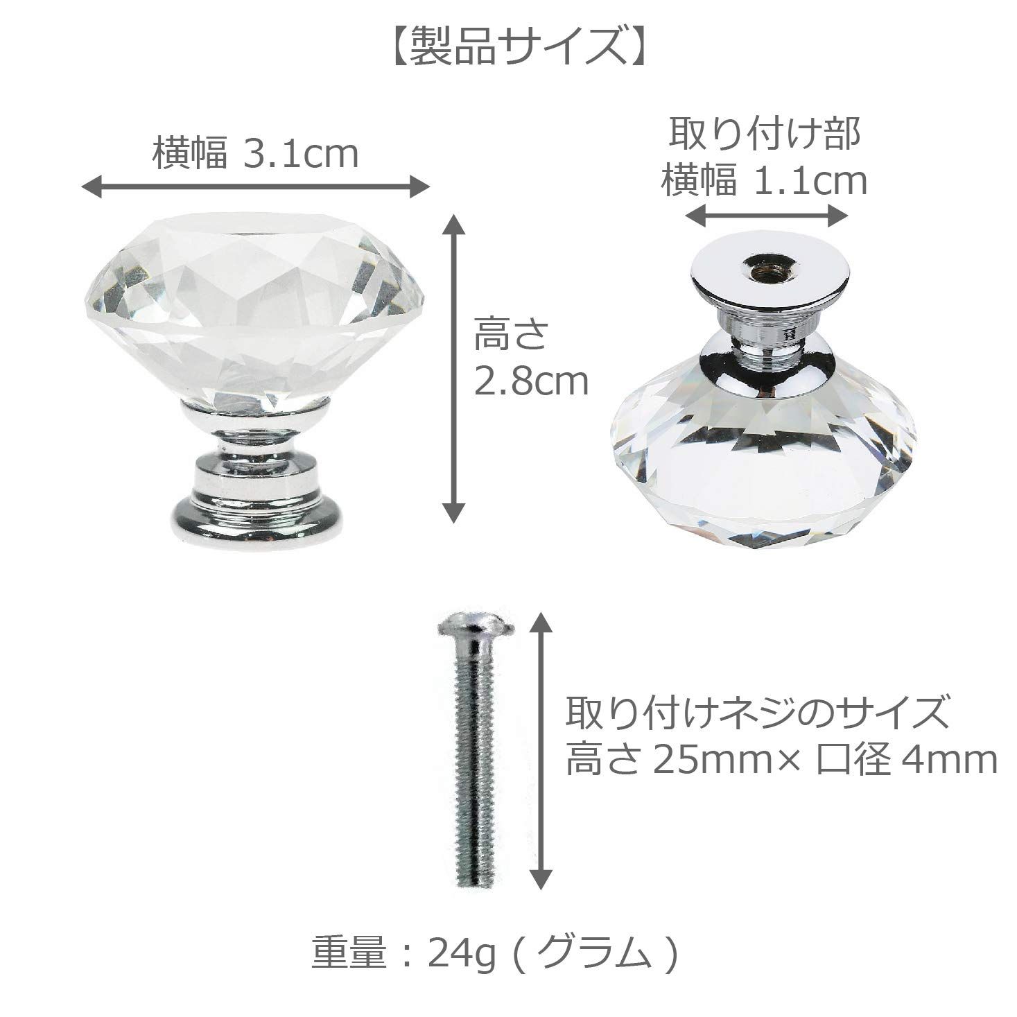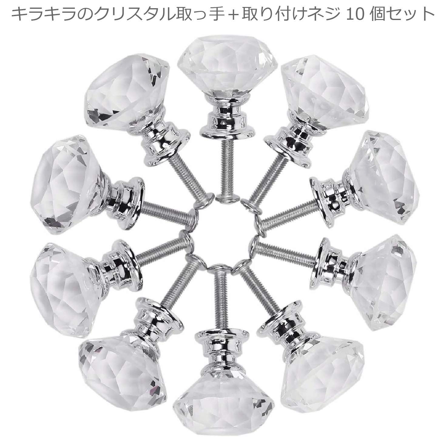 ColorfylCoco 引き出し ノブ 取っ手 つまみ ハンドル キラキラ クリアー 透明 クリスタルガラス ネジ付き 30mm幅 10個セット ダイヤモンド形 家具 装飾 インテリア