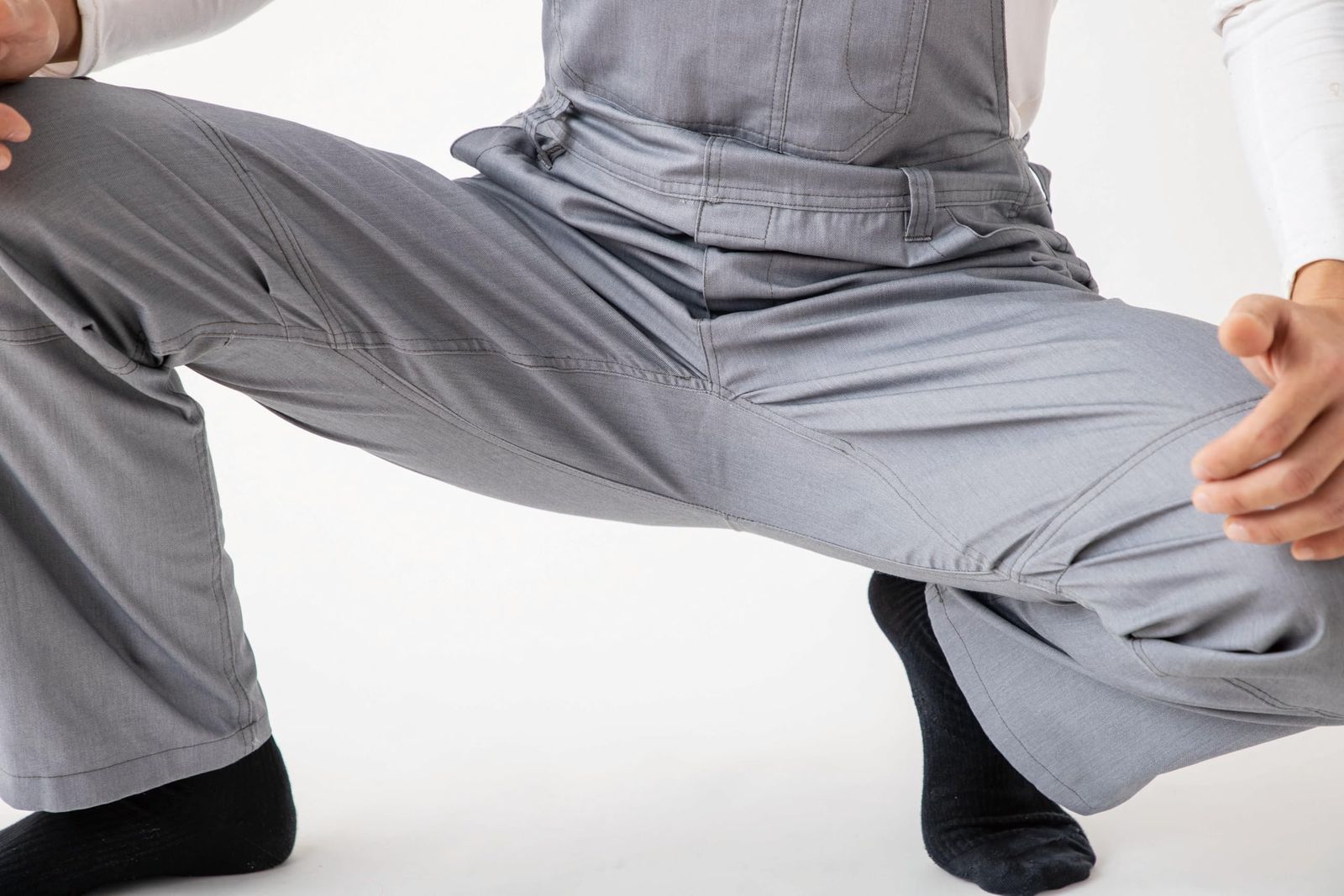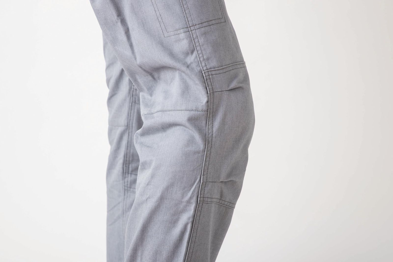 □ヒザ3Dカット(ヒザ部分のタックにより、屈伸運動をサポート)