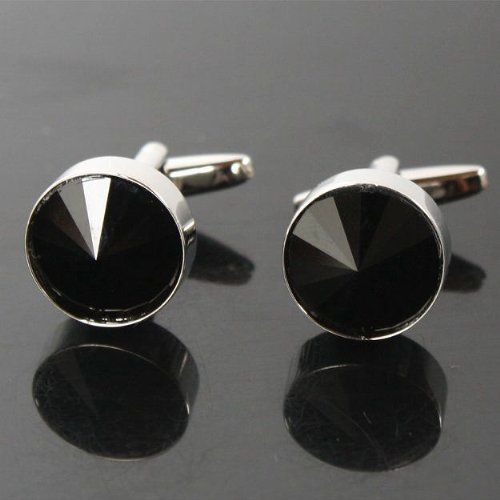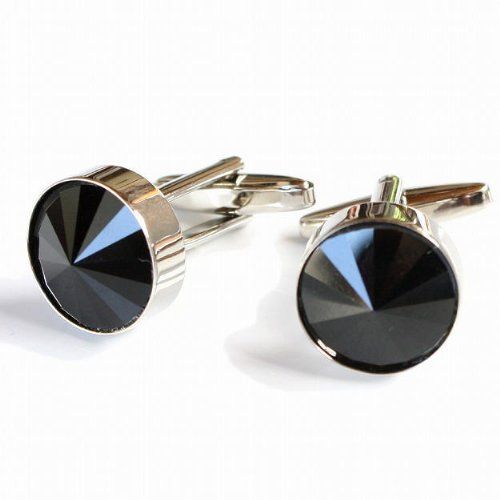 鎌倉カフス工房 ジェットスワロフスキー・ラウンドカフス(カフリンクス・カフスボタン) cc021-a-6