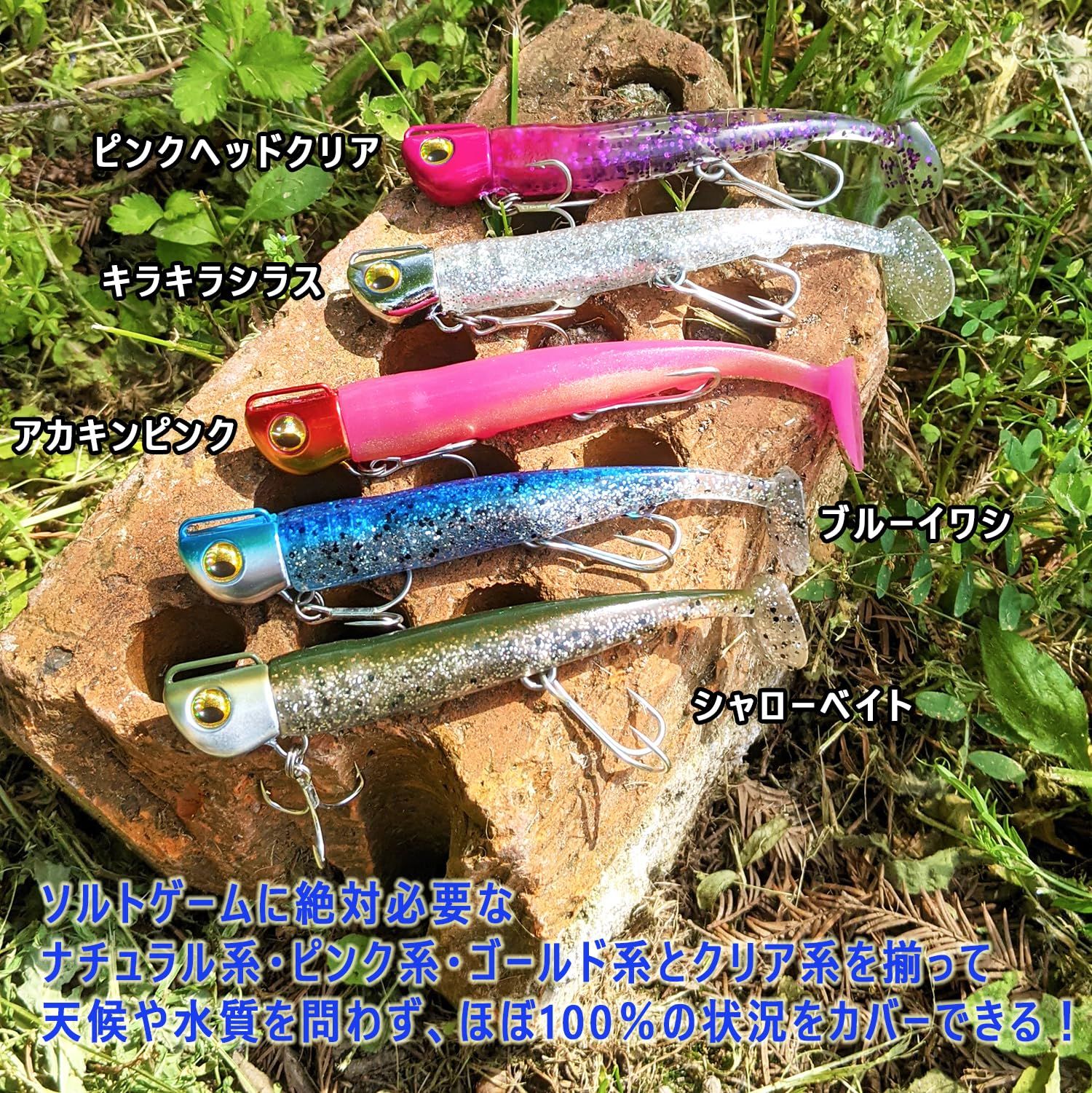ソルトゲームに不可欠なナチュラル系・ピンク系・ゴールド系とクリア系を揃って、天候や水質を問わず、ほぼ100%の状況をカバーでき、シーバス、ヒラメ、青物、あらゆる場所で様々なフィッシュイーターに対応可能!