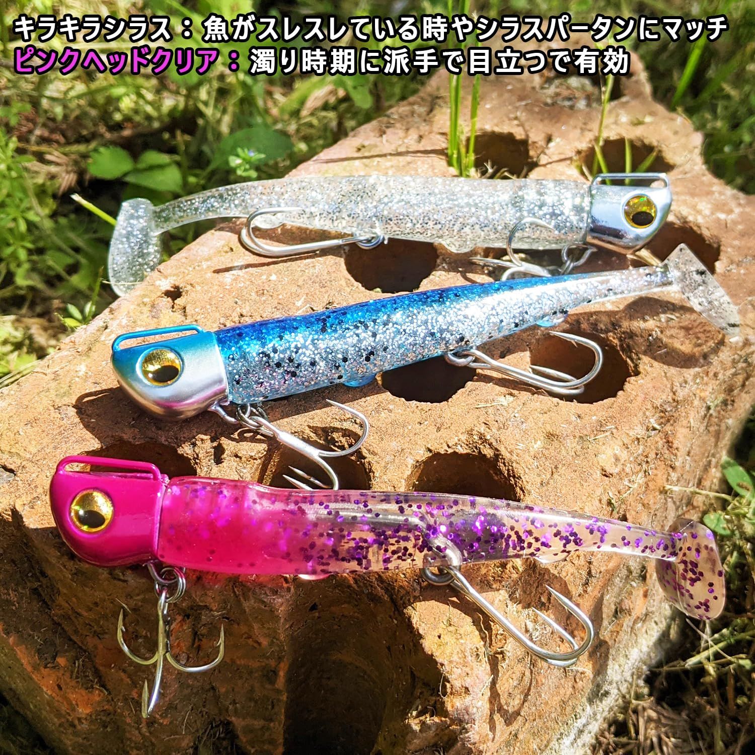 ジグヘッドに重心移動のスライドアイと空気抵抗が少ないスリムボディーデザインで、通常ジグヘッドのない抜群の飛距離を叩き出せる。