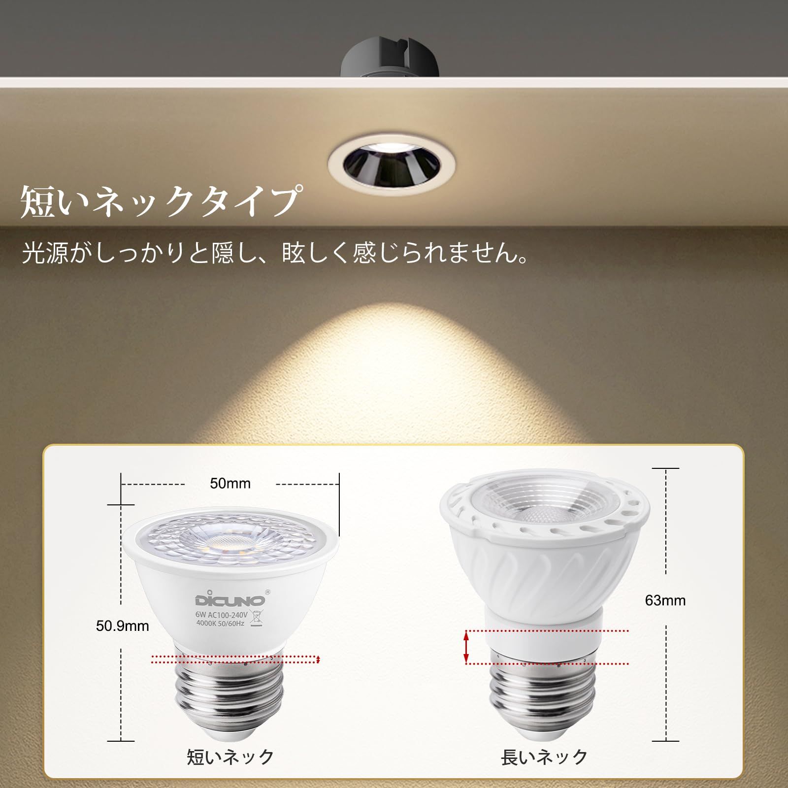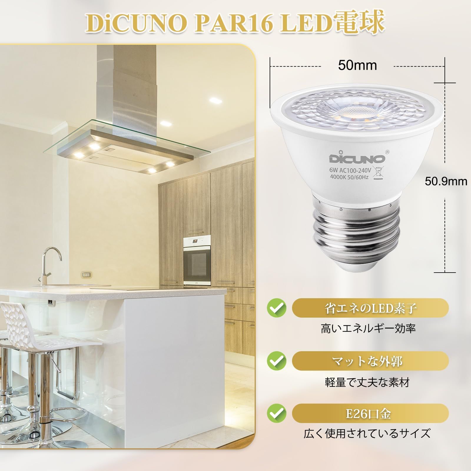 DiCUNO LED電球 E26口金 LED スポットライト 白色 6W 60W形ハロゲン電球相当 4000K 660lm 広角60° 高輝度 CRI90 AC100-240V 調光器非対応 PSE認証済み 6個入