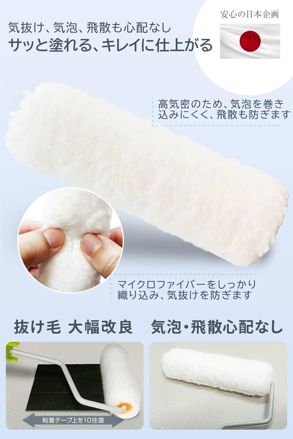 毛の一本一本が細かいので、塗料の飛び散りも極めて少なくなっています