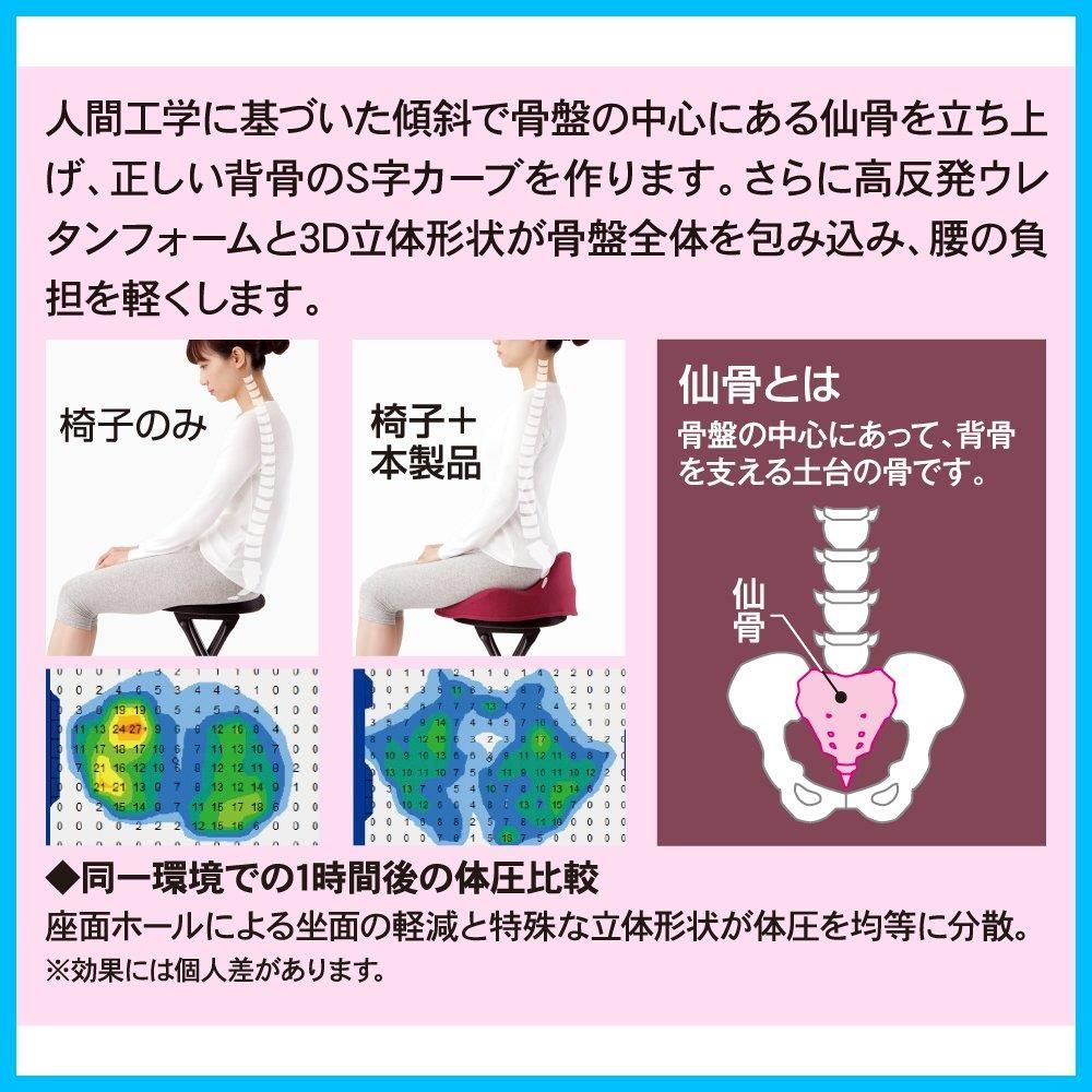 高反発ウレタンフォームと3D立体形状が骨盤全体を包み込み、腰への負担を軽くします。