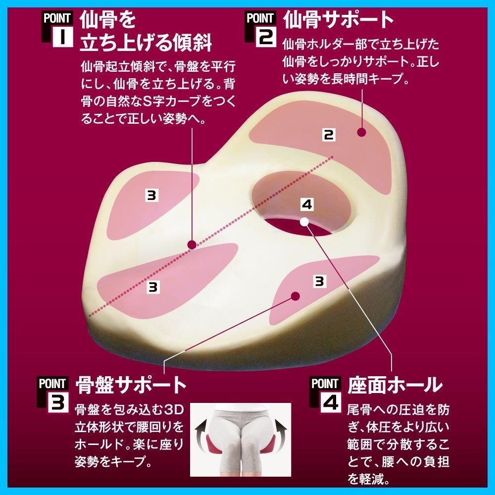 さらに高反発ウレタンフォームと3D立体形状が骨盤全体を包み込み、腰の負担を軽くします。