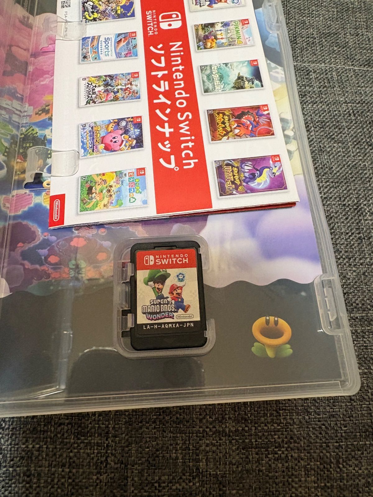 ニンテンドースイッチ本体 HAC-001 とスーパーマリオブラザーズ・ワンダーのソフトとピンクのSwitchケースとJoy-Conストラップのセットになります。