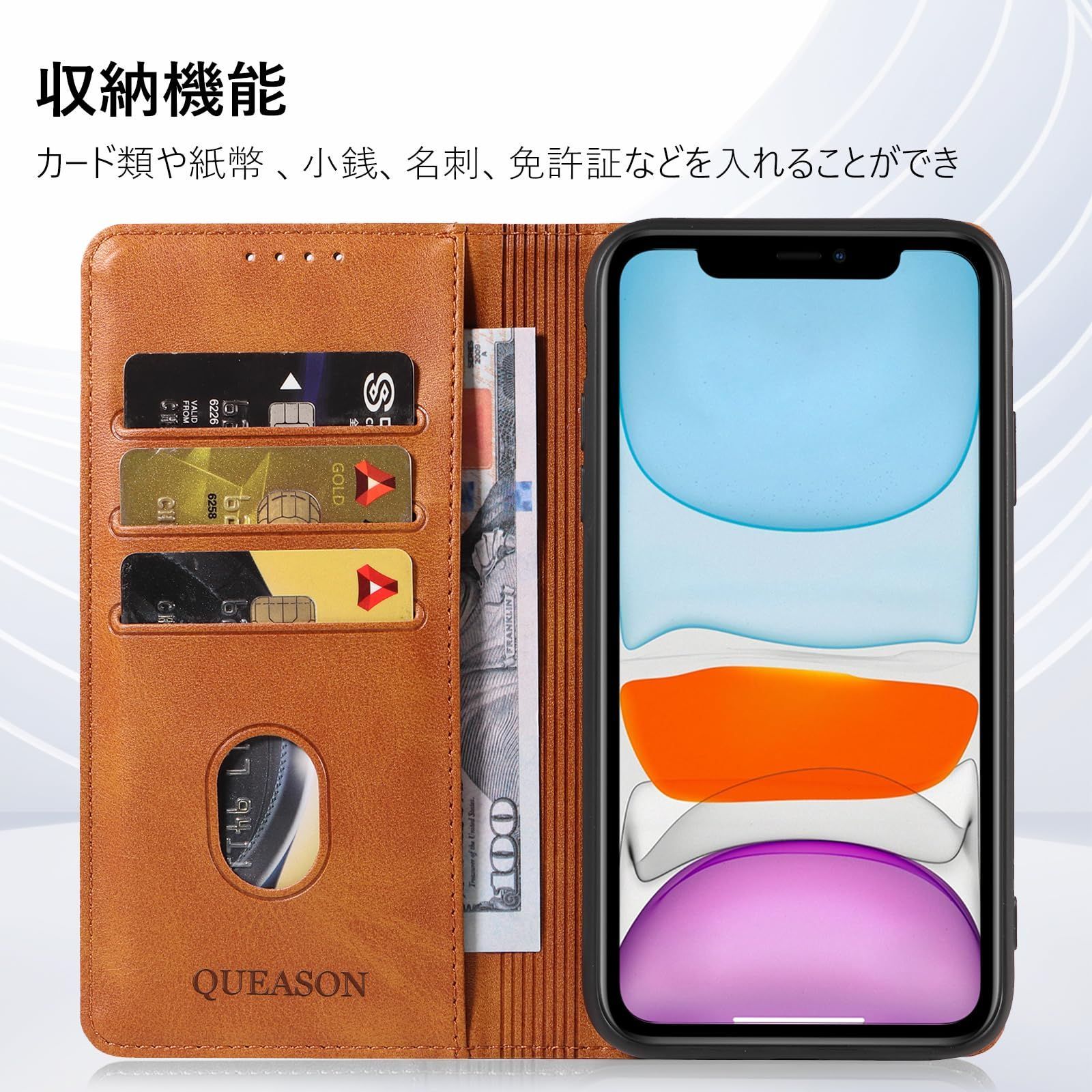 QUEASON【iPhone 11 用 ケース 手帳型】マグネット式 iphone11 用 ケース スタンド機能 いpほね11 用 スマホケース カード収納 アイフォン11 用 スマホケース 耐衝撃 落下防止 防塵(カーキ)