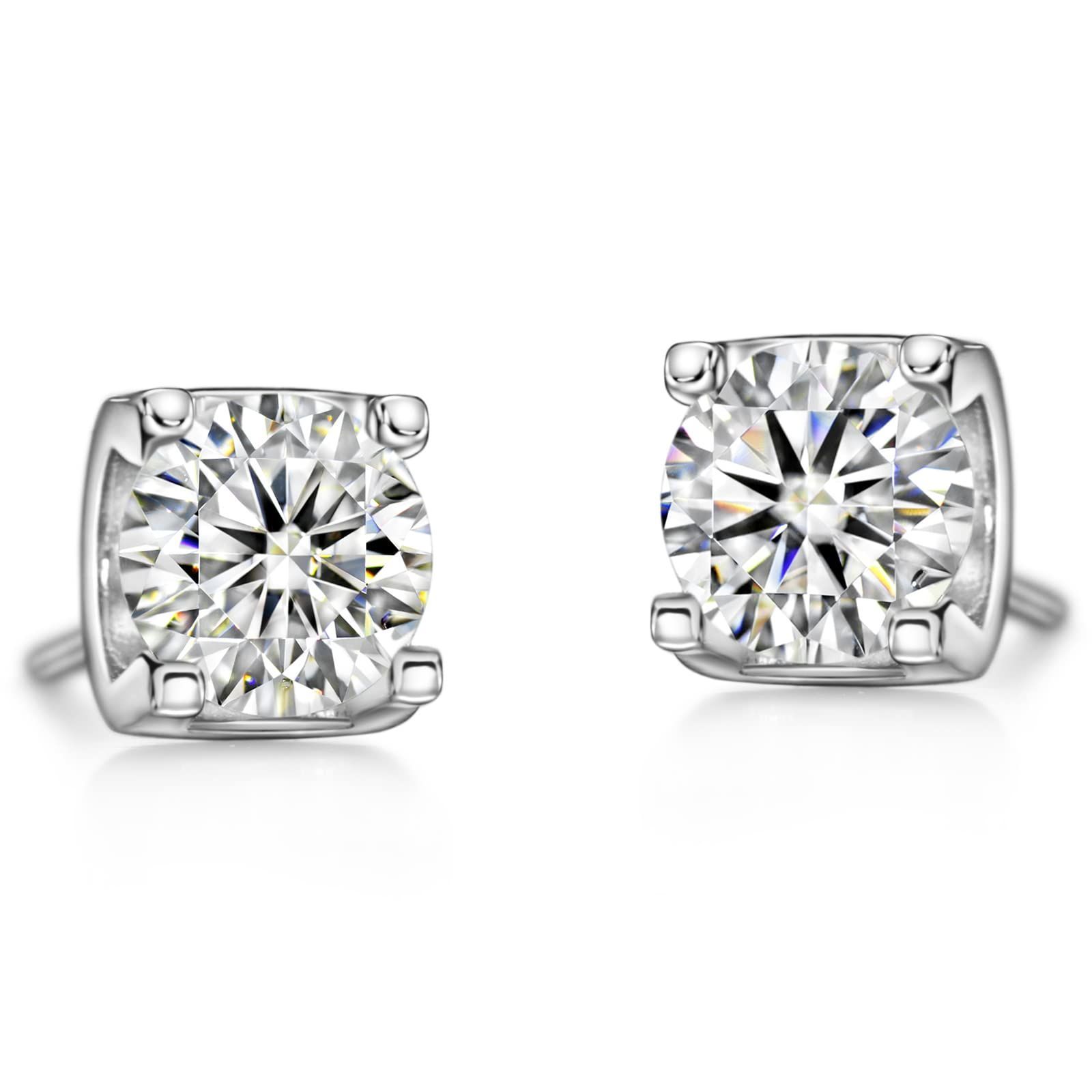 Michooyel S925 1ct モアッサナイト スタッド イヤリング 牛頭スタイル D カラー VVS1 ラウンド ブリリアント カット 925 スターリング シルバー イヤリング ファイン ジュエリー レディース