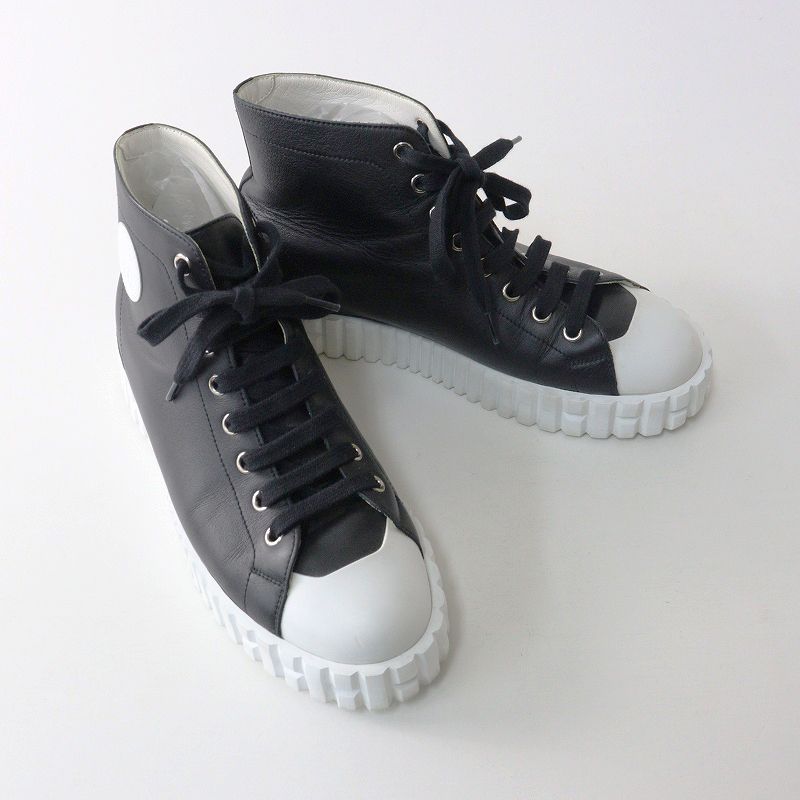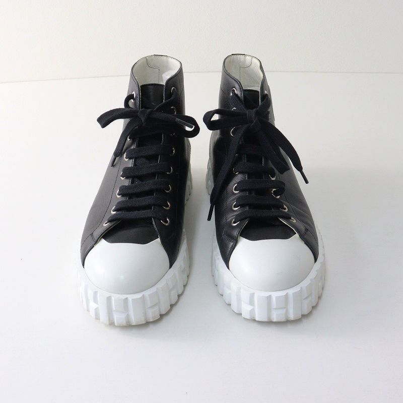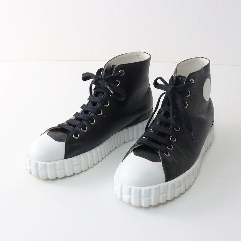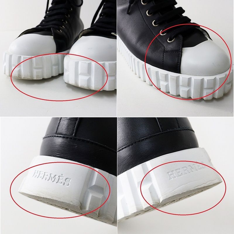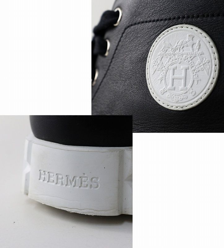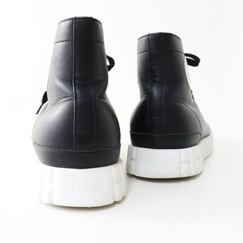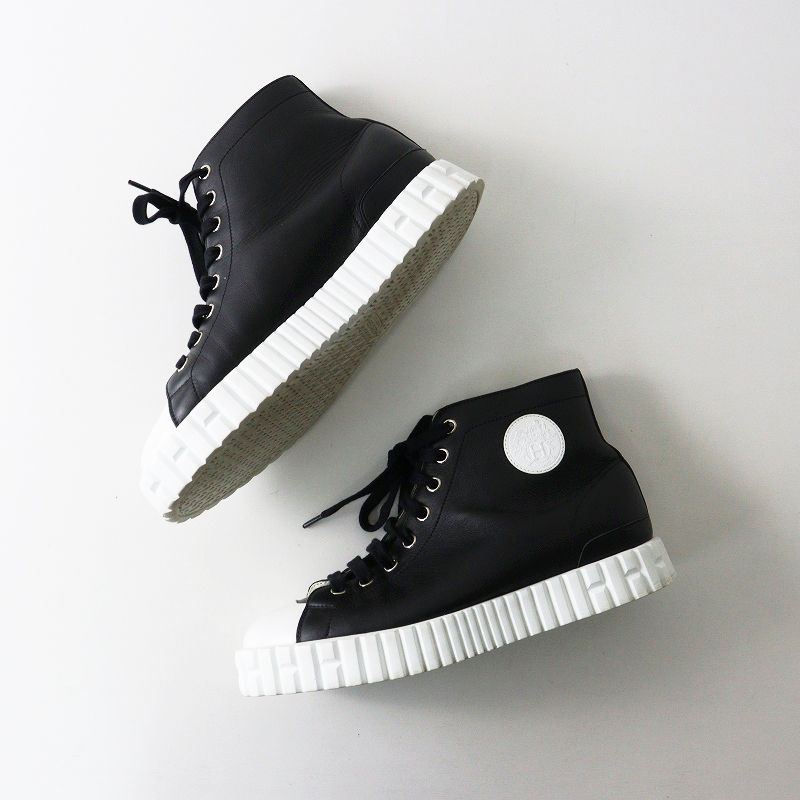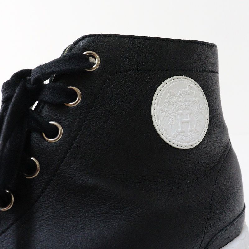【品名】良品 レディース エルメス HERMES クライム レザーレースアップハイカットスニーカー 38/24.5cm ブラック┃イタリア製