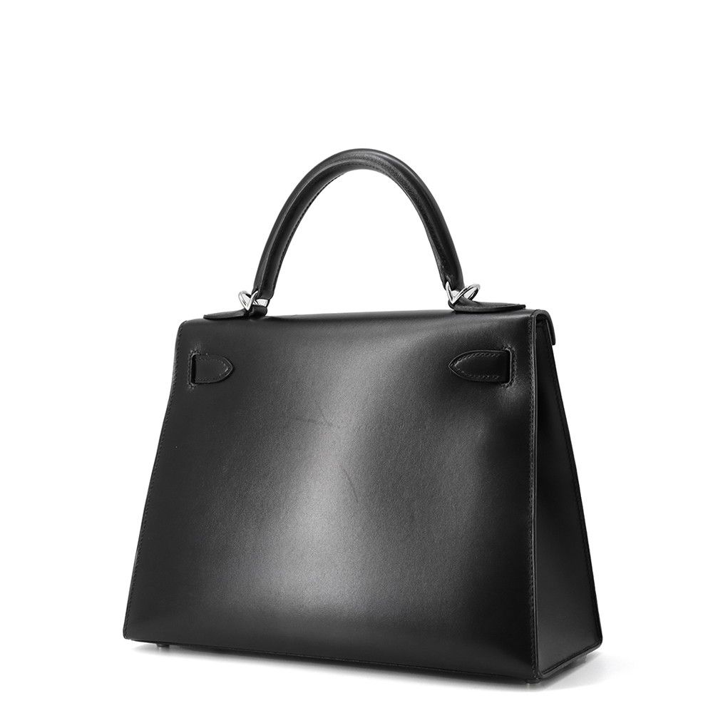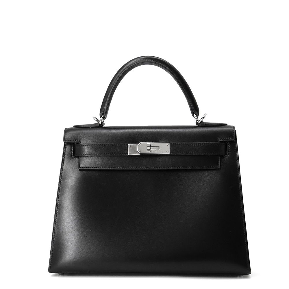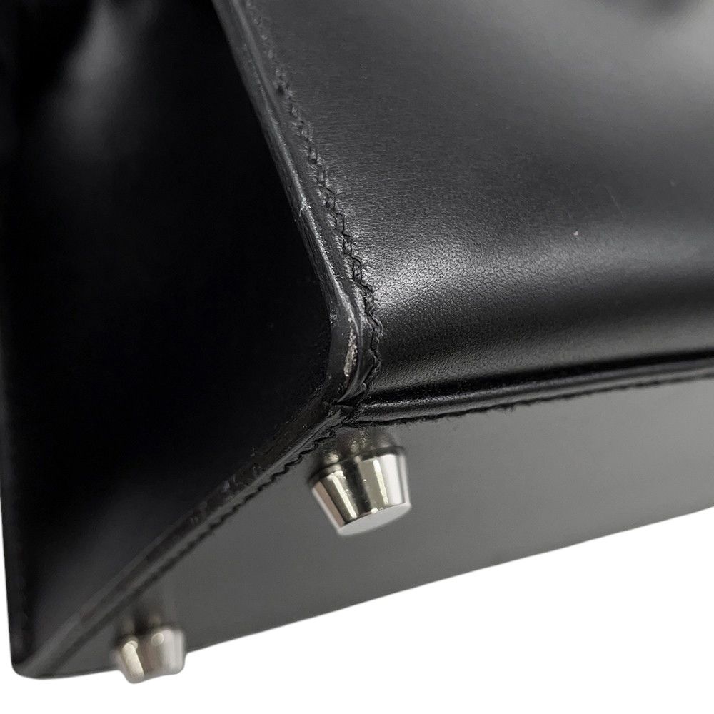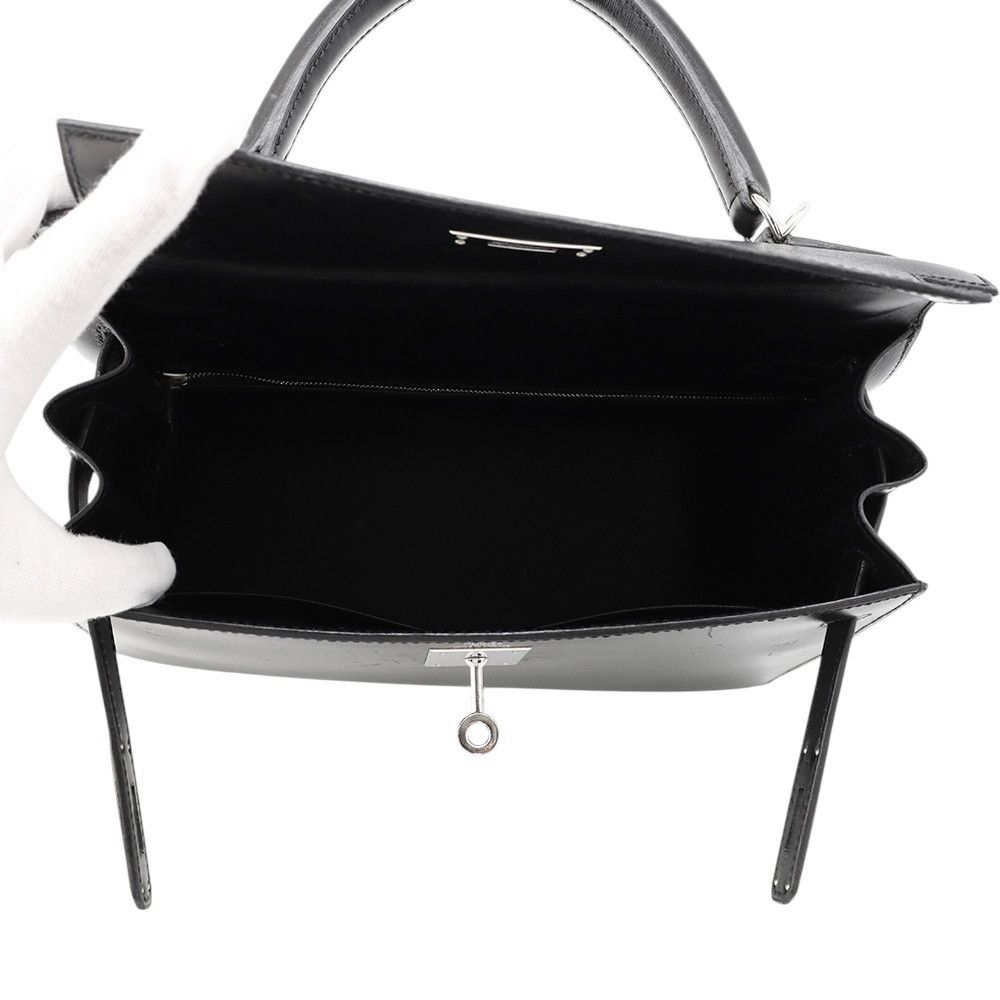 エルメス ハンドバッグ ケリー28 外縫い ブラック/シルバー金具 ボックスカーフ □G刻印 2wayショルダー 黒