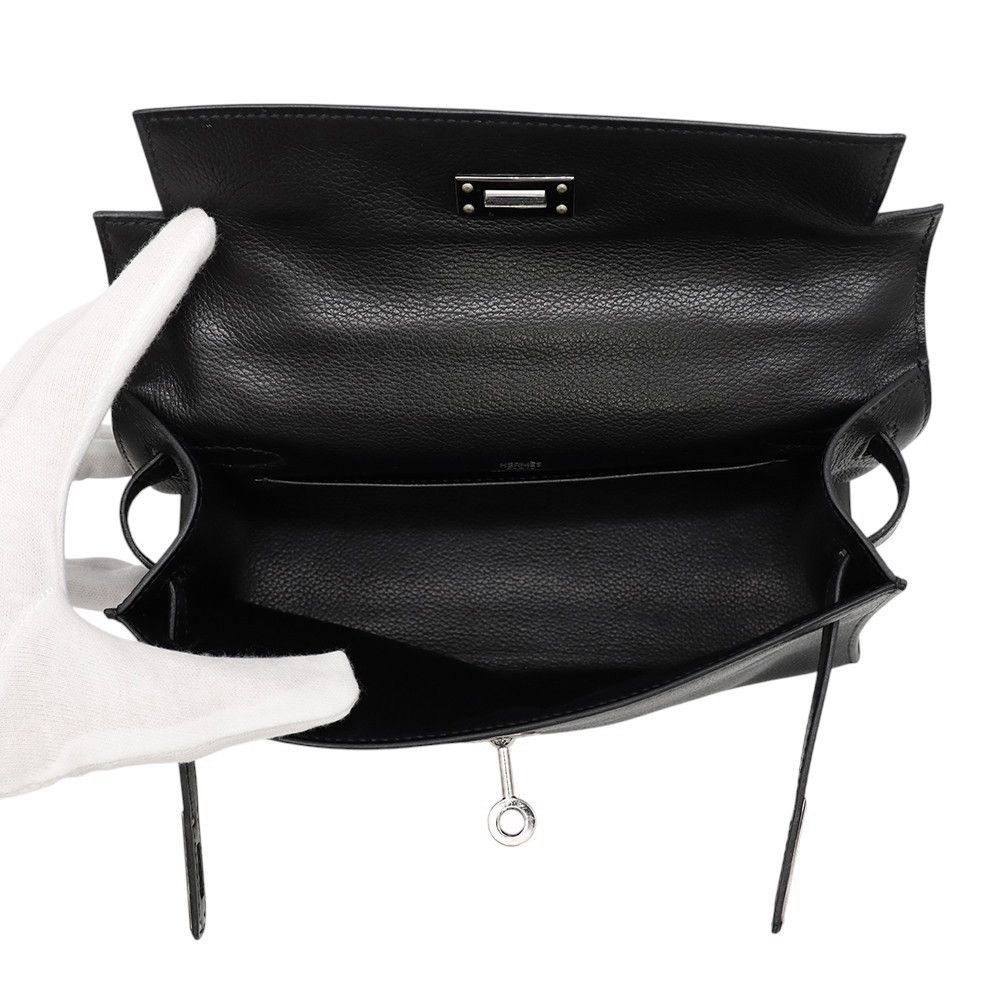 エルメス ハンドバッグ ポシェットケリー ブラック/シルバー金具 エバーグレイン □I刻印 黒