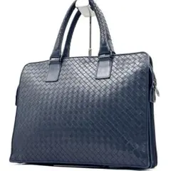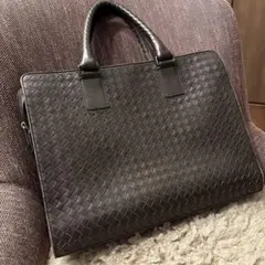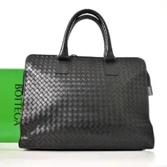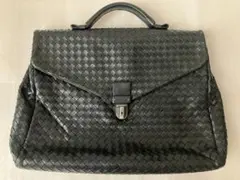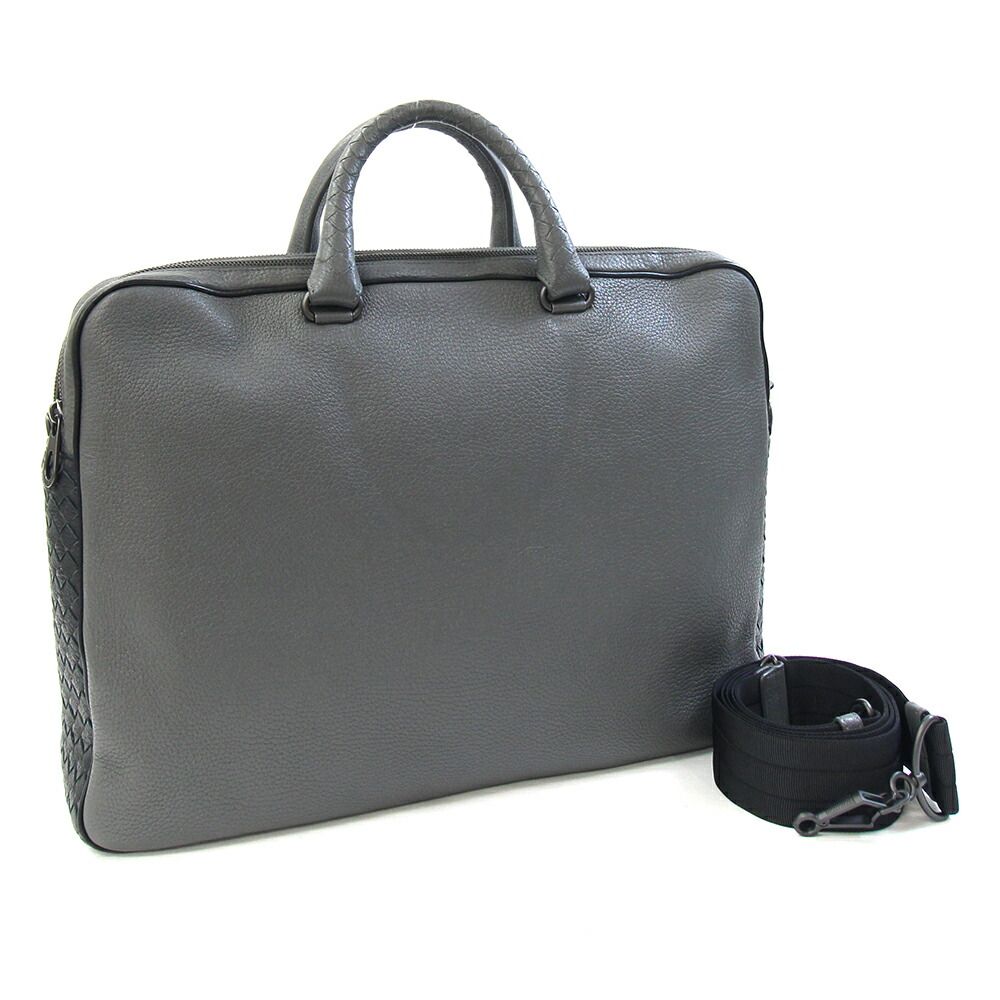 ボッテガヴェネタ2WAYブリーフケースイントレチャート440242グレーブラックレザー中古書類カバンショルダービジネス編み込みメンズ男性BOTTEGAVENETA