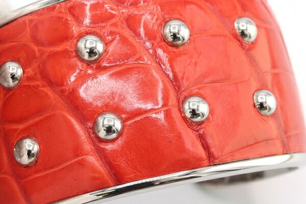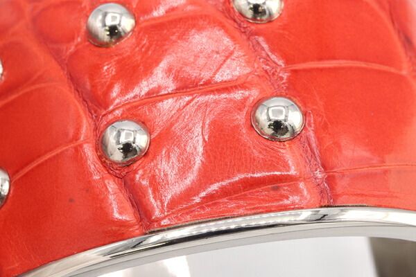 トッズバングルオレンジシルバークロコ型押しレザーメタル中古カフアクセサリー腕輪スタッズレディースTOD'S
