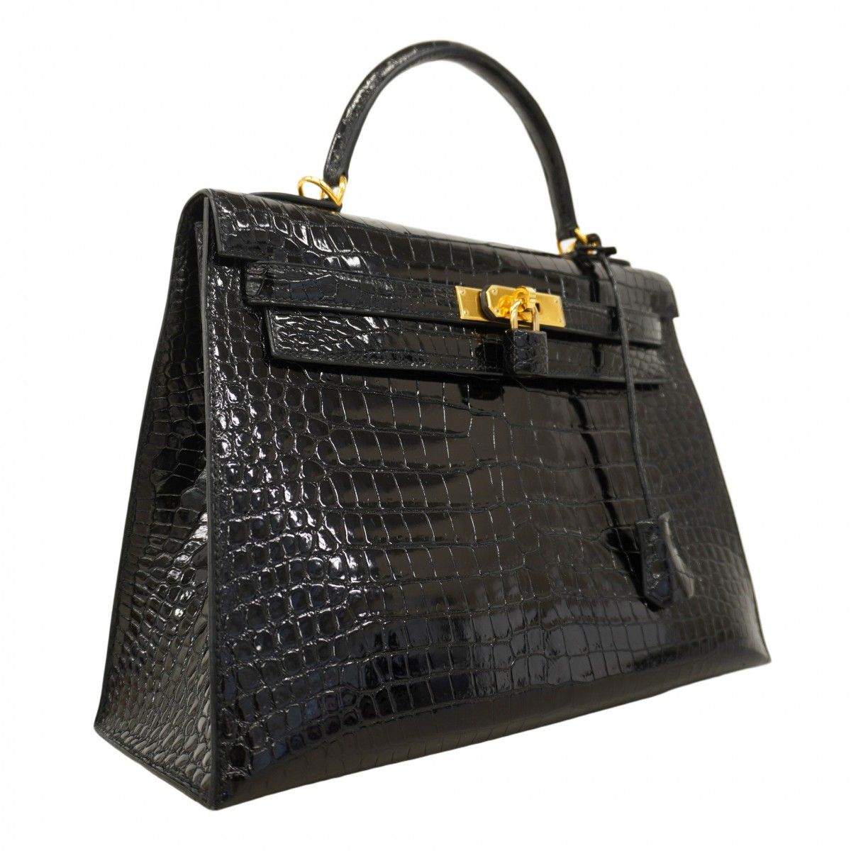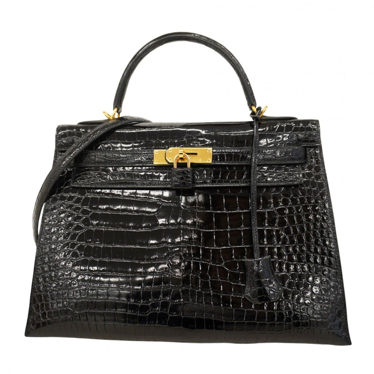 【5pc3831-g】エルメス ハンドバッグ ケリー32 ポロサス ブラック ゴールド金具 □D刻印 2wayバッグ【中古】レディース