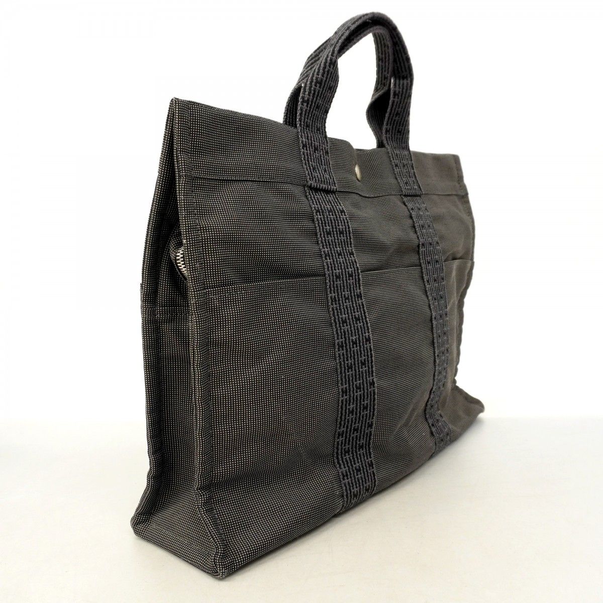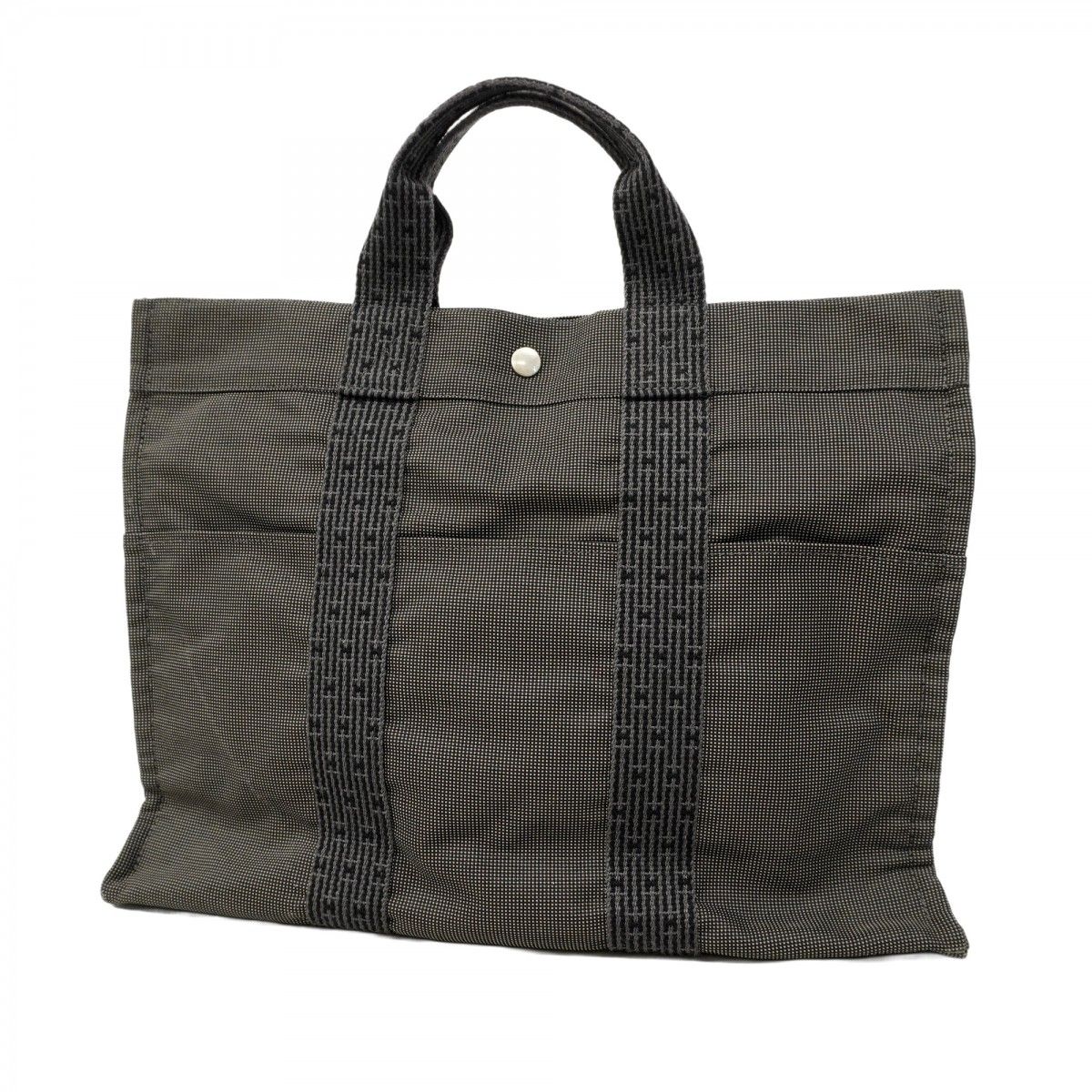 【5pc4049-k】エルメス トートバッグ エールラインMM キャンバス グレー シルバー金具【中古】レディース