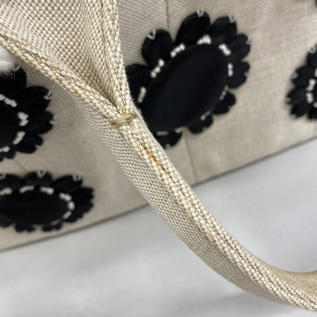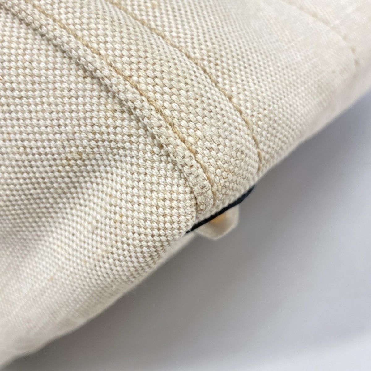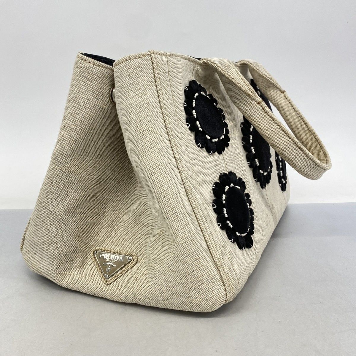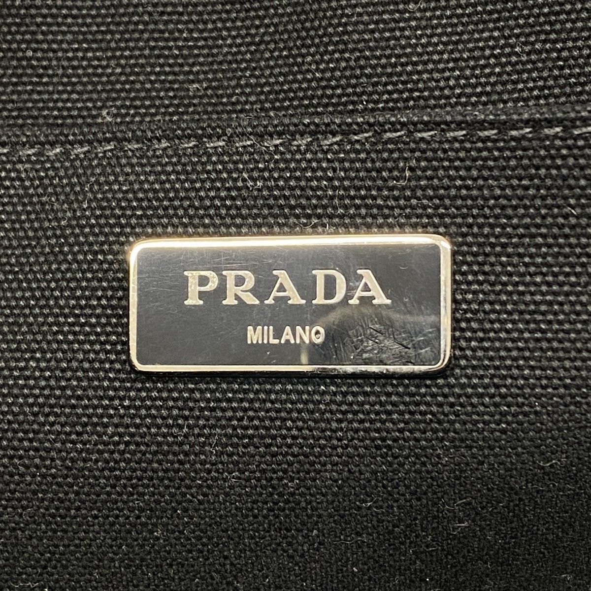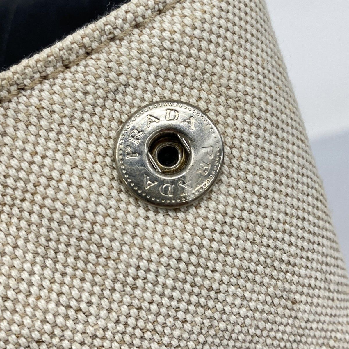 【5pc4068-k】プラダ トートバッグ カナパ キャンバス サテン ベージュ ブラック シルバー金具【中古】レディース