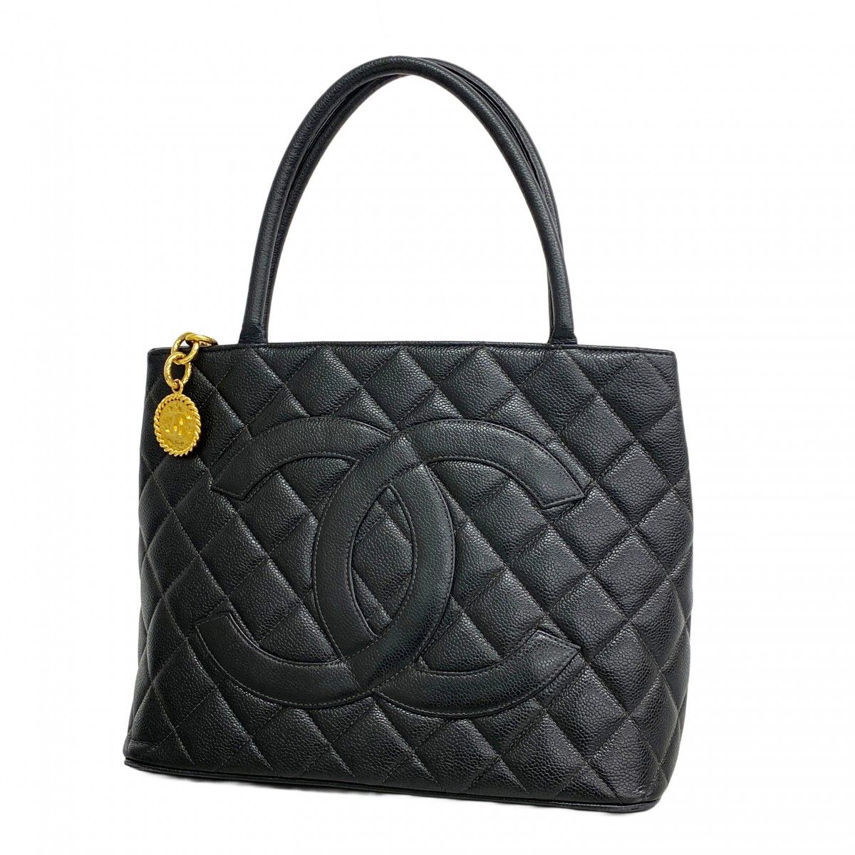 【5pc4093-k】シャネル トートバッグ 復刻トート キャビアスキン ブラック ゴールド金具【中古】レディース