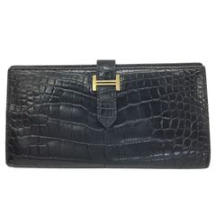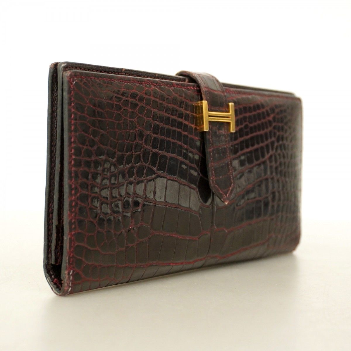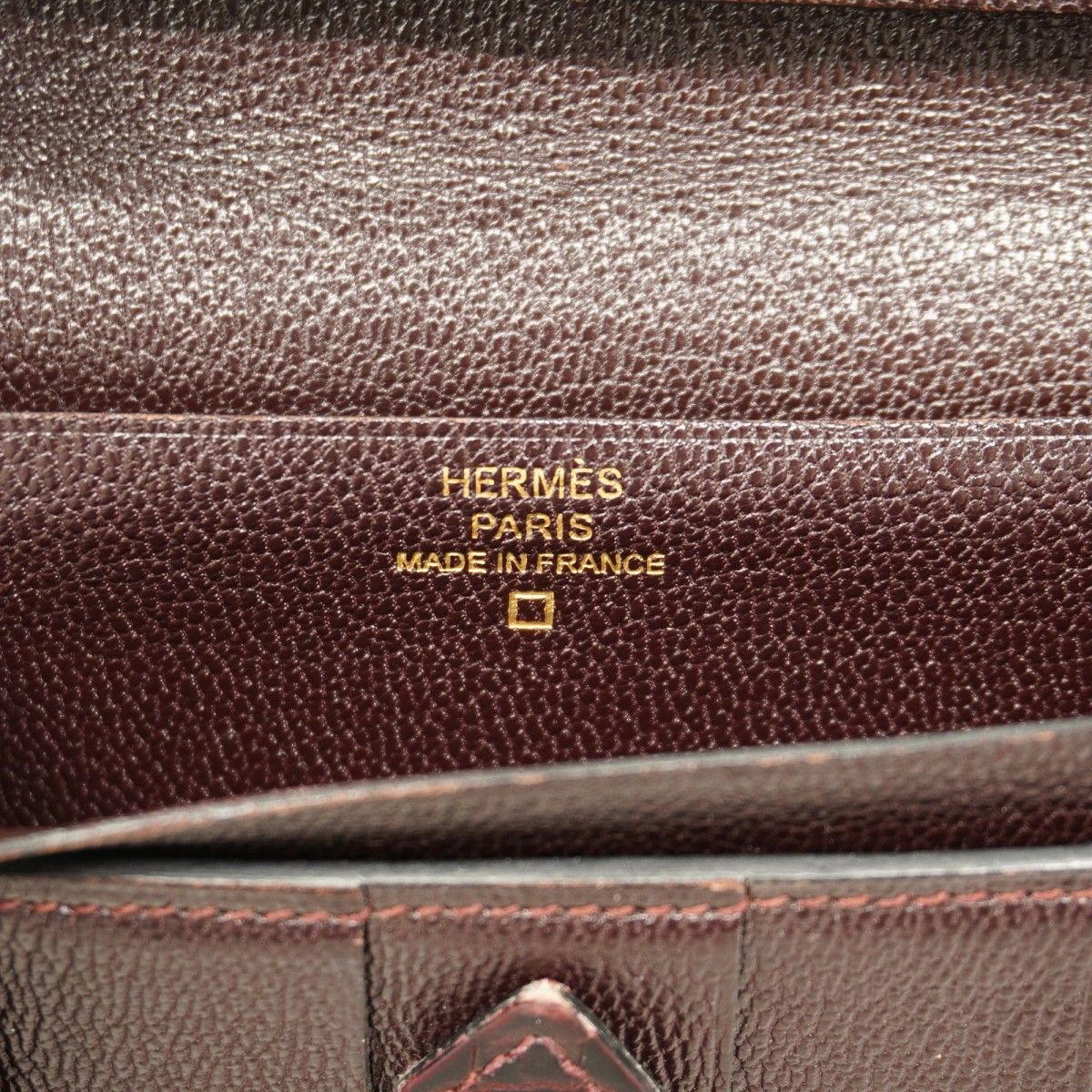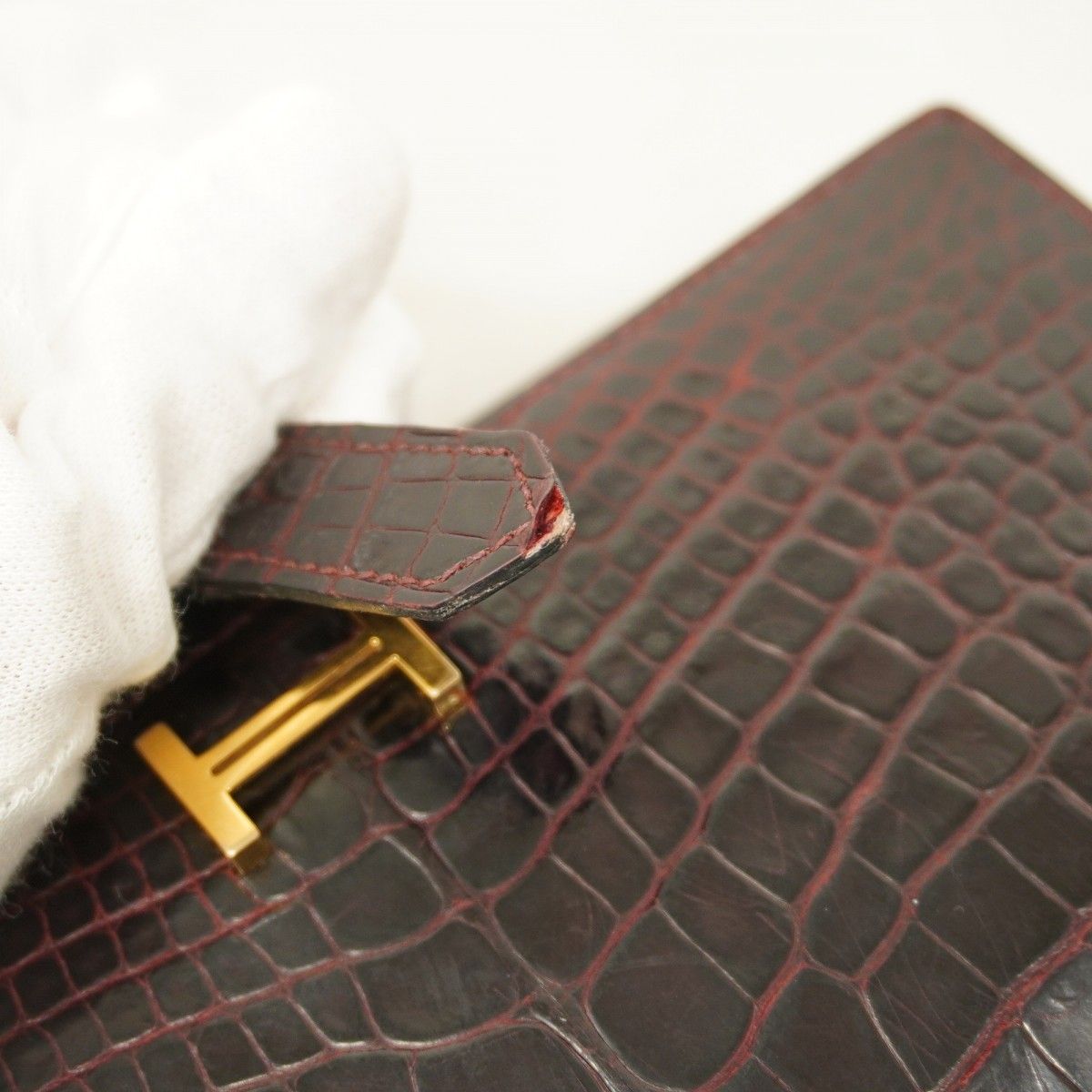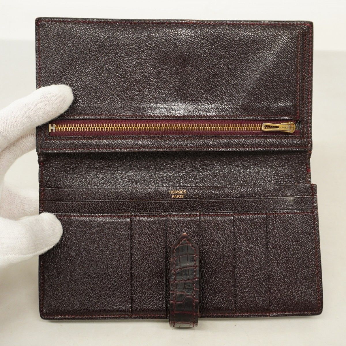 【5pc4145】エルメス 長財布 ベアンスフレ アリゲーター ボルドー ゴールド金具 □N刻印【中古】メンズ レディース ユニセックス