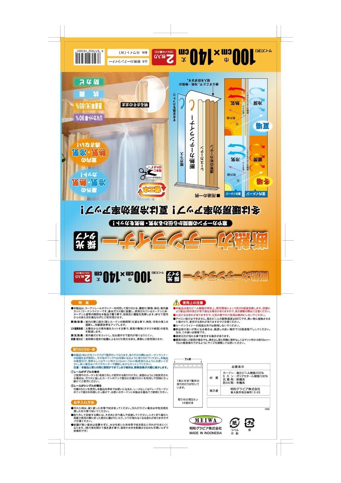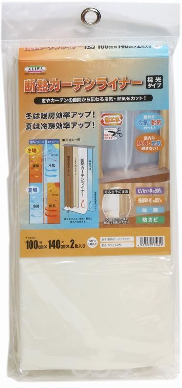 明和グラビア 冷気を防ぐ 窓 冷暖房効率UP カーテン 省エネ 節電 採光 UVカット 取り付け簡単 ホワイト 半透明 断熱カーテンライナー 100cm×140cm 2枚入