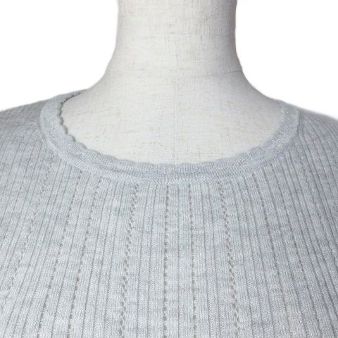 【商品名】The Barnnet ザバーネット 美品 ラメニット プルオーバー リブ 半袖 スカラップ ロゴ ライトグレー /X